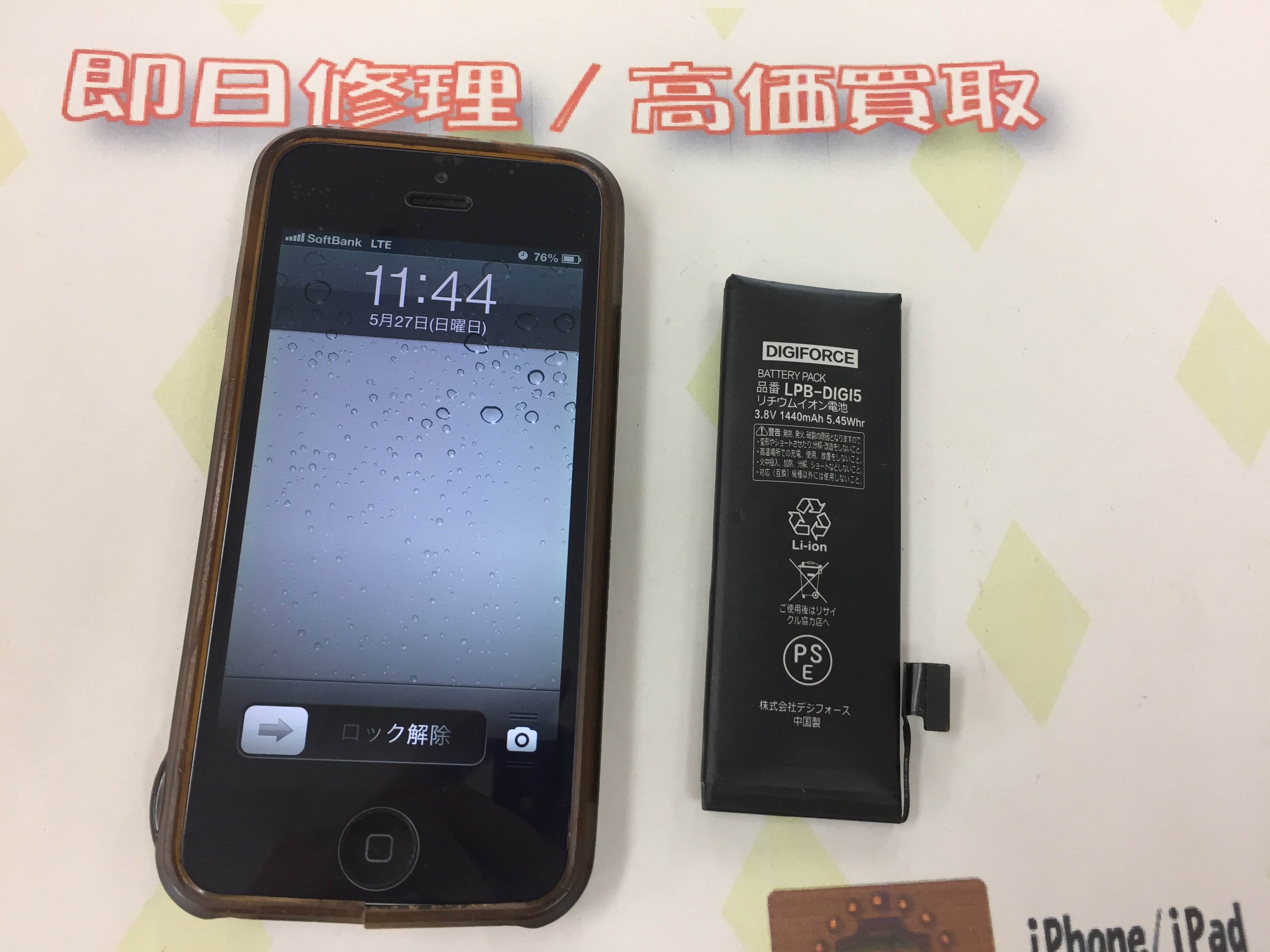 加古川市よりiPhone5 バッテリー交換をご依頼頂きました。