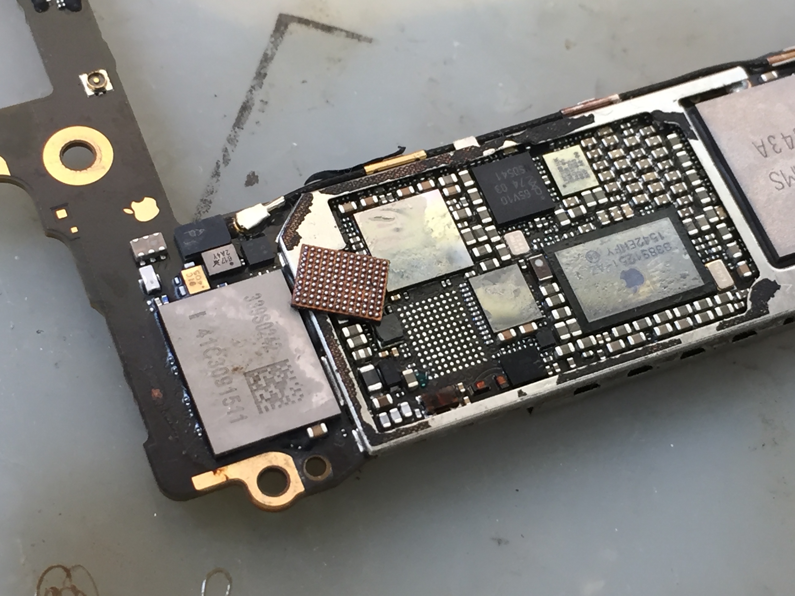タッチ操作を司っているICチップを取り外し、再発を少しでも防ぐ為に一部処理を行います。