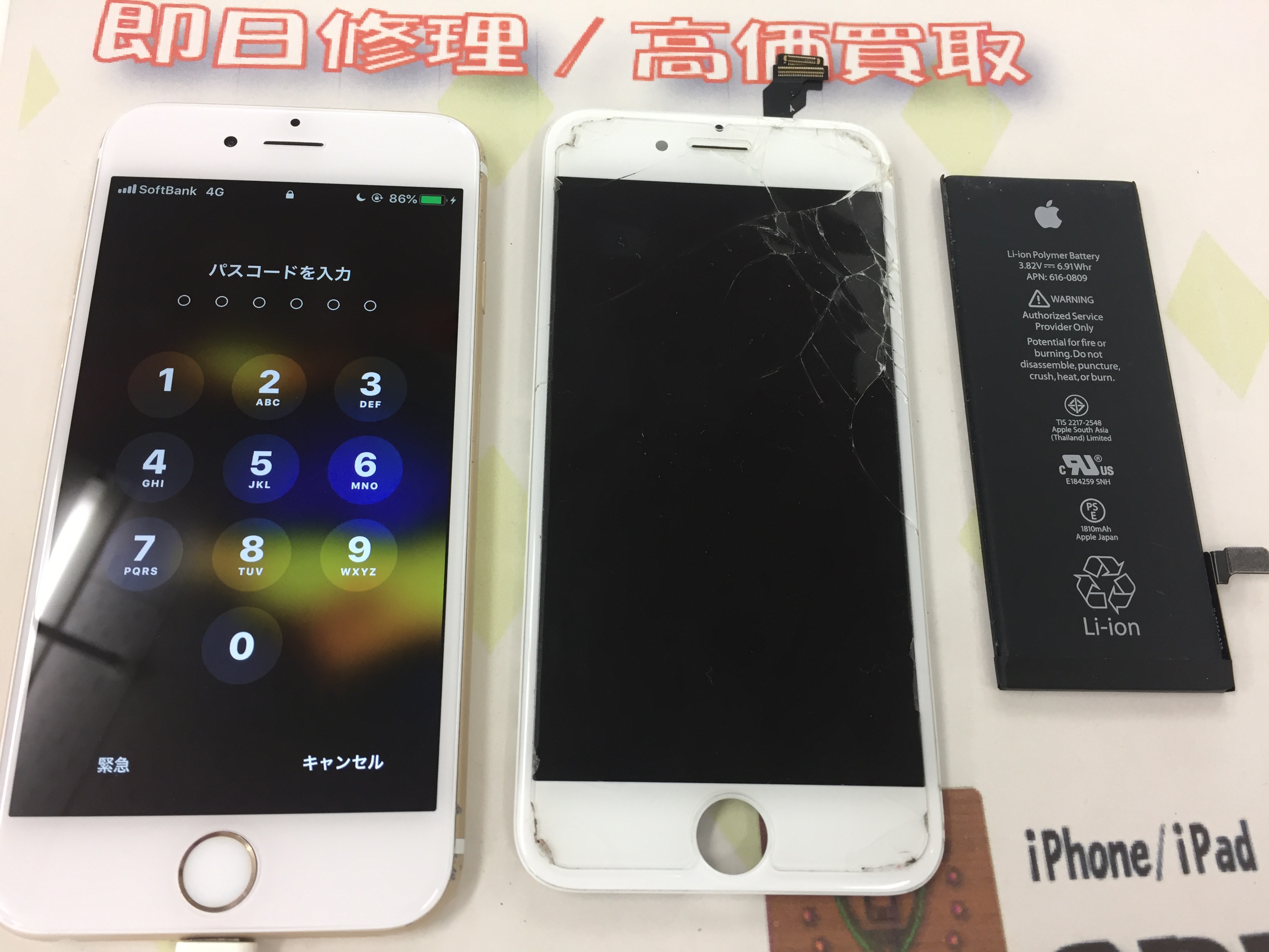 高砂市よりiPhone6 ガラス割れ&バッテリー交換をご依頼いただきました。