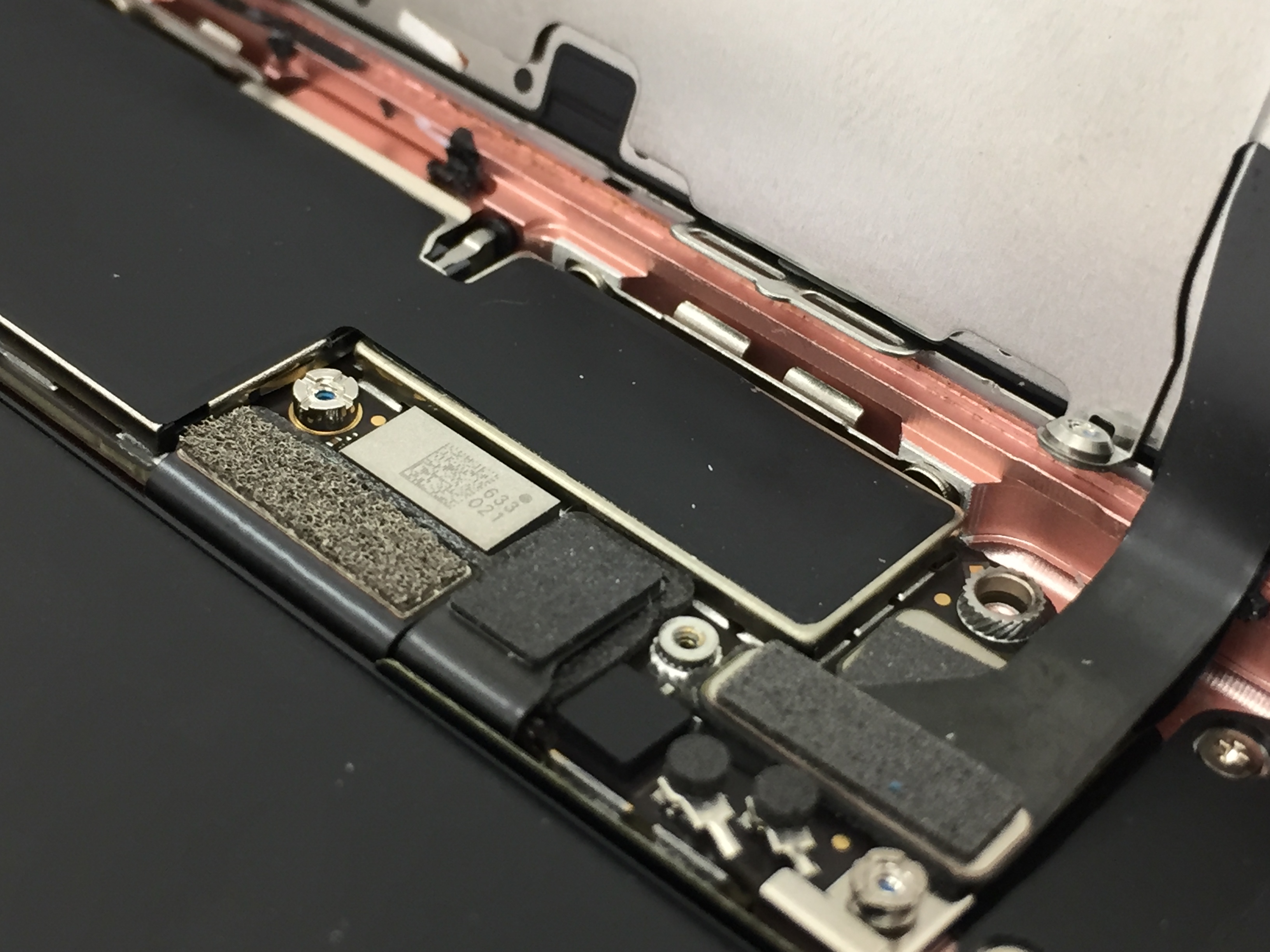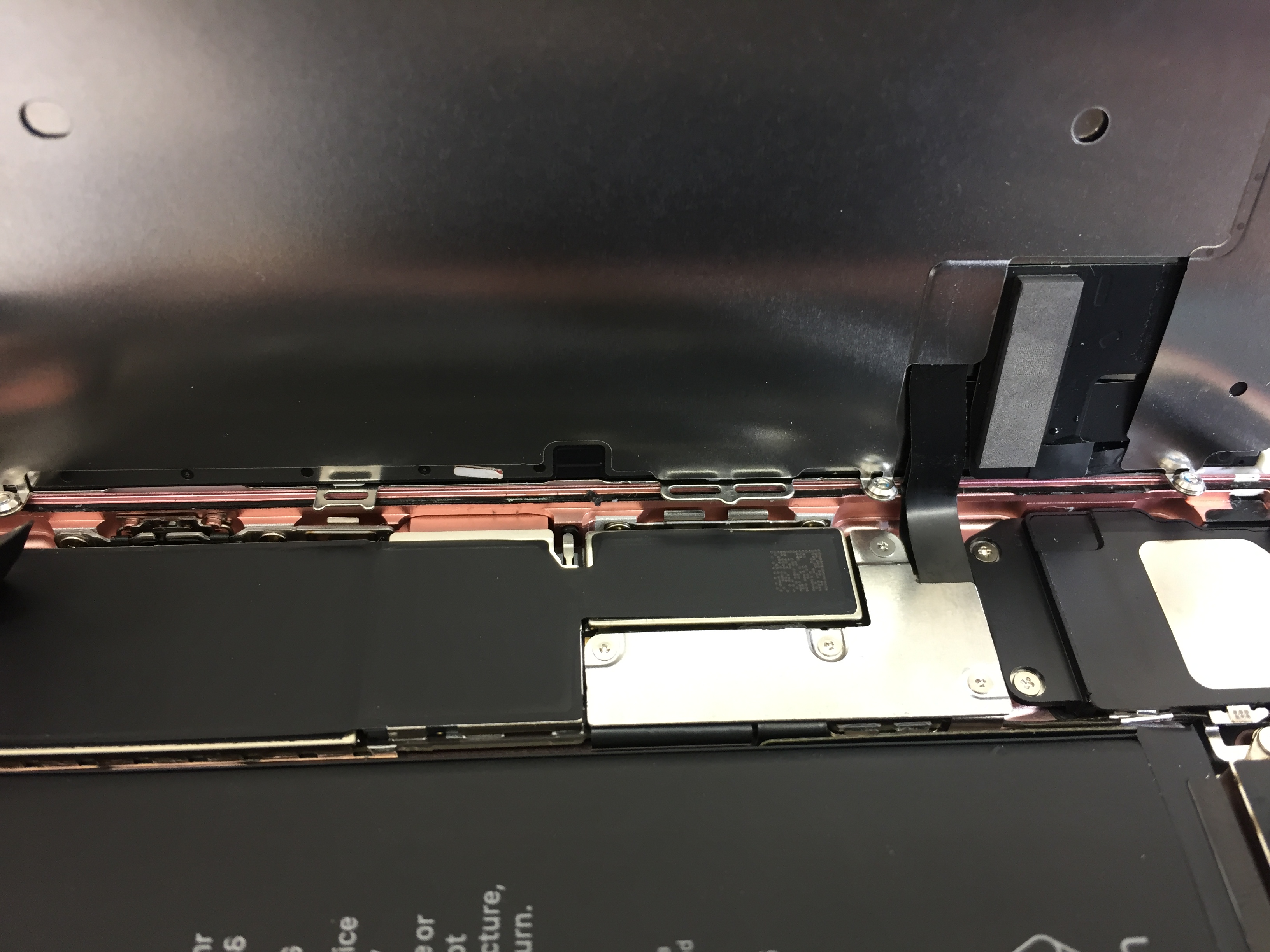 まず、端末は分解した痕跡が見られ本来であればバッテリーや液晶パネルのコネクター上に取り付けられているプレートが無い状態でした。