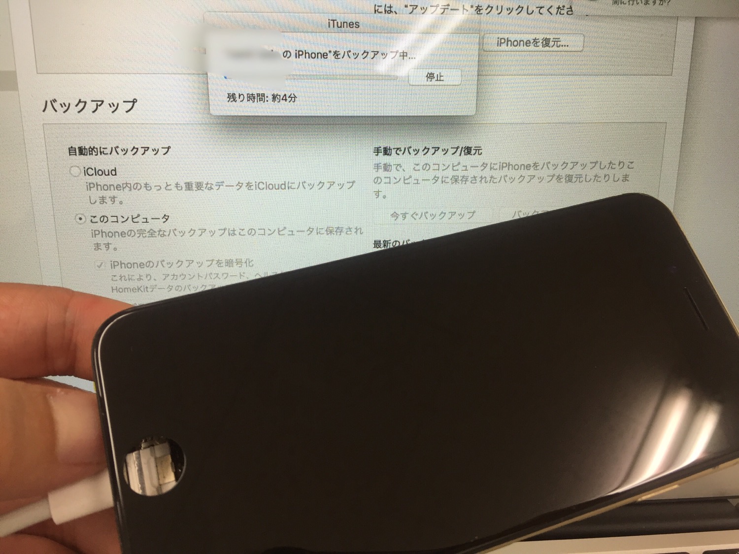 かろうじてタッチパネルは反応しますのでパソコンに繋ぎ全てのデータをバックアップします。