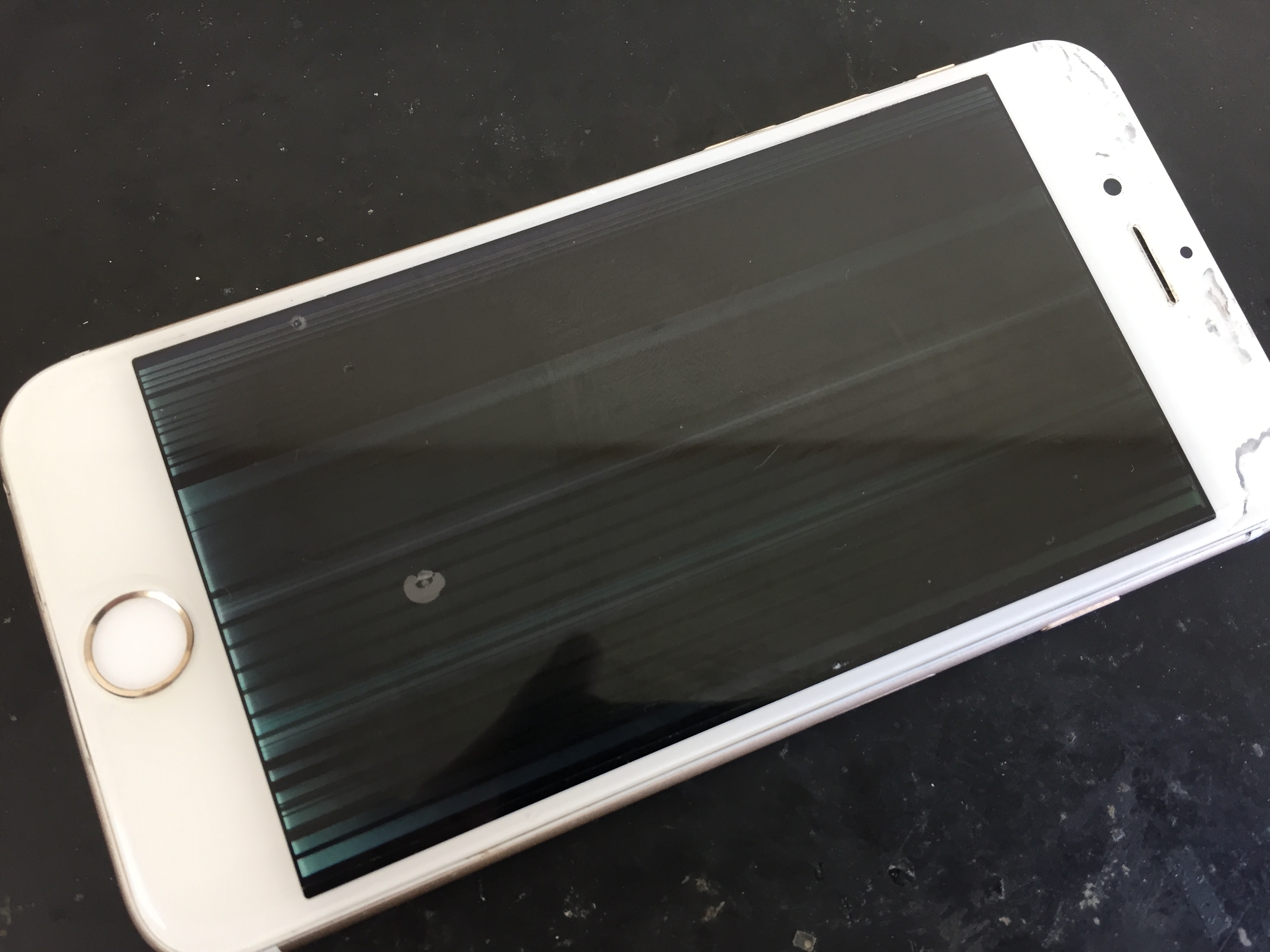 以前他店で画面の修理をされたそうですがガラス部分が完全に剥がれてしまい、液晶不良となっておりました。