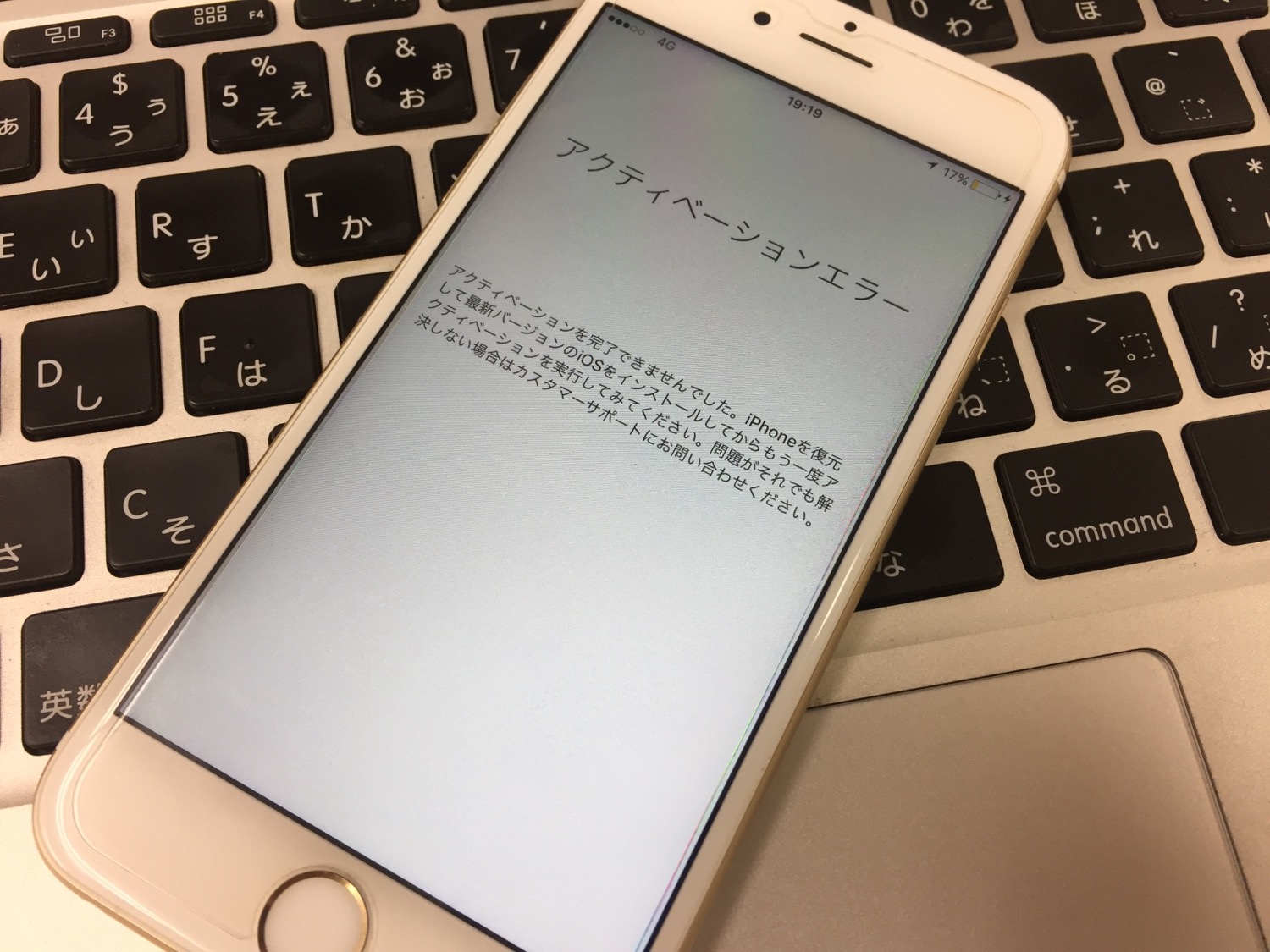 画面を確認すると「アクティベーションを完了できませんでした。iPhoneを復元して最新バージョンのiOSをインストールしてからもう一度アクティベーションを実行してみてください。・・・」との表示が。