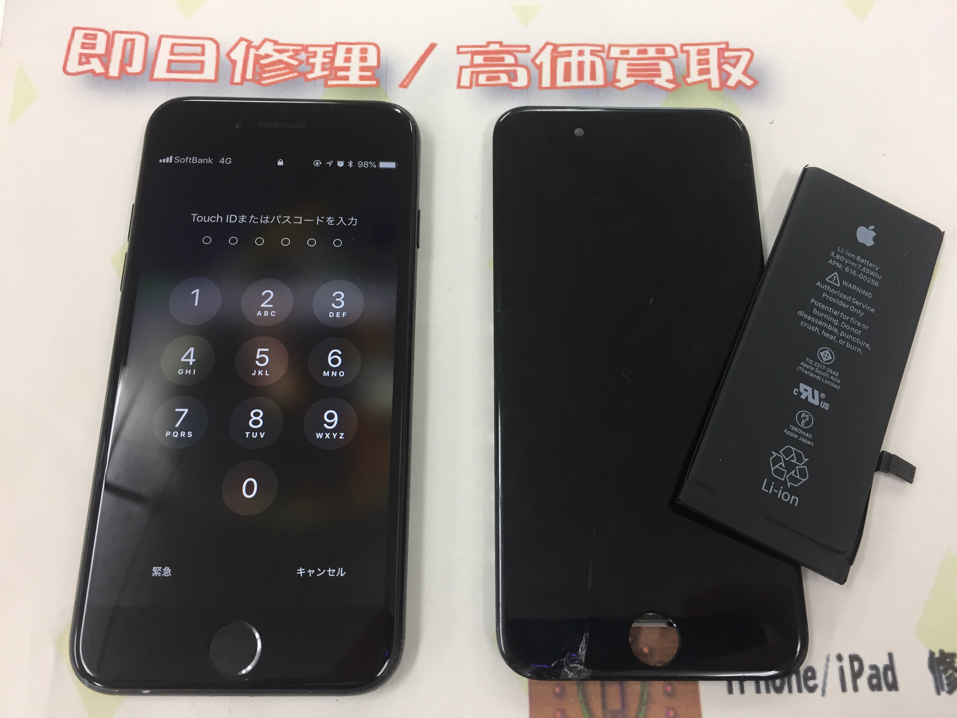 明石市よりiPhone7 ガラス割れ、バッテリー交換修理をご依頼いただきました。