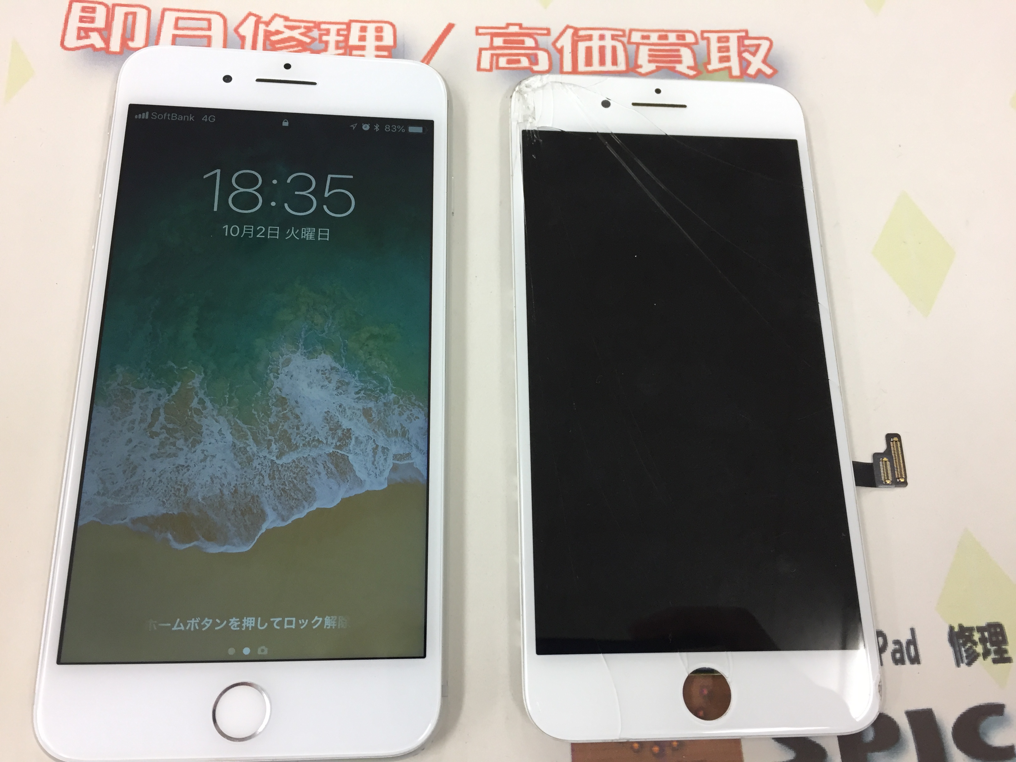 iPhone8 Plus ガラス割れ&液晶不良修理→互換パーツ修理 ¥16,800(税込)