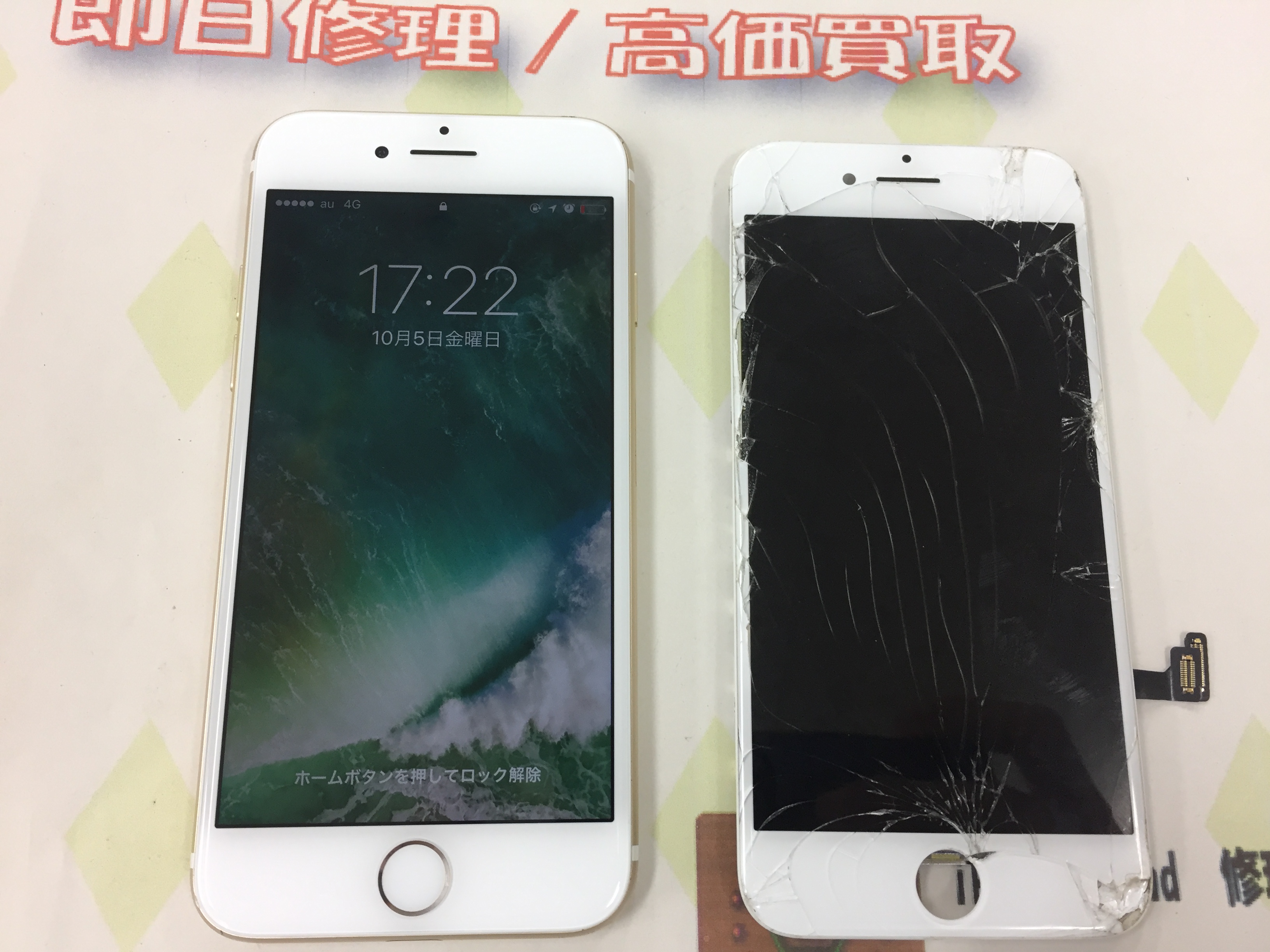 ガラス割れの影響で液晶不良となっておりましたがお時間20分ほどで新品同様に修理完了です。
