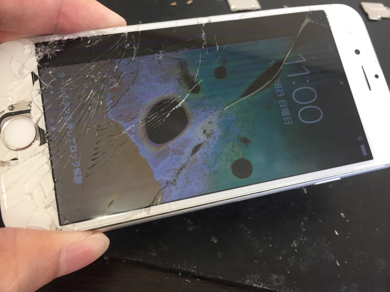 ガラス割れの影響で液晶不良となりタッチパネルも反応しない状態でした。