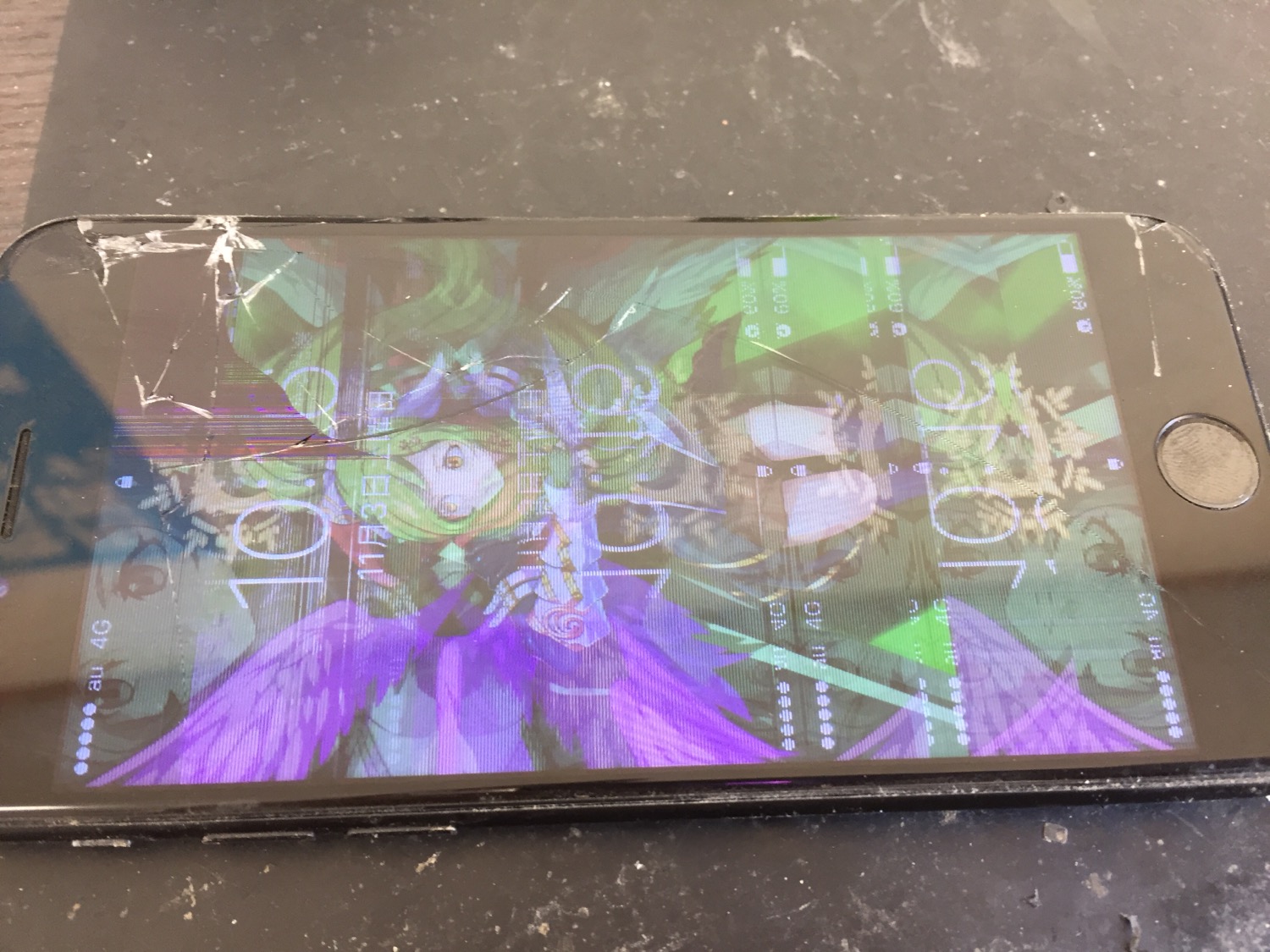 ガラス割れの影響で液晶不良となりタッチパネルも暴走している状態でした。