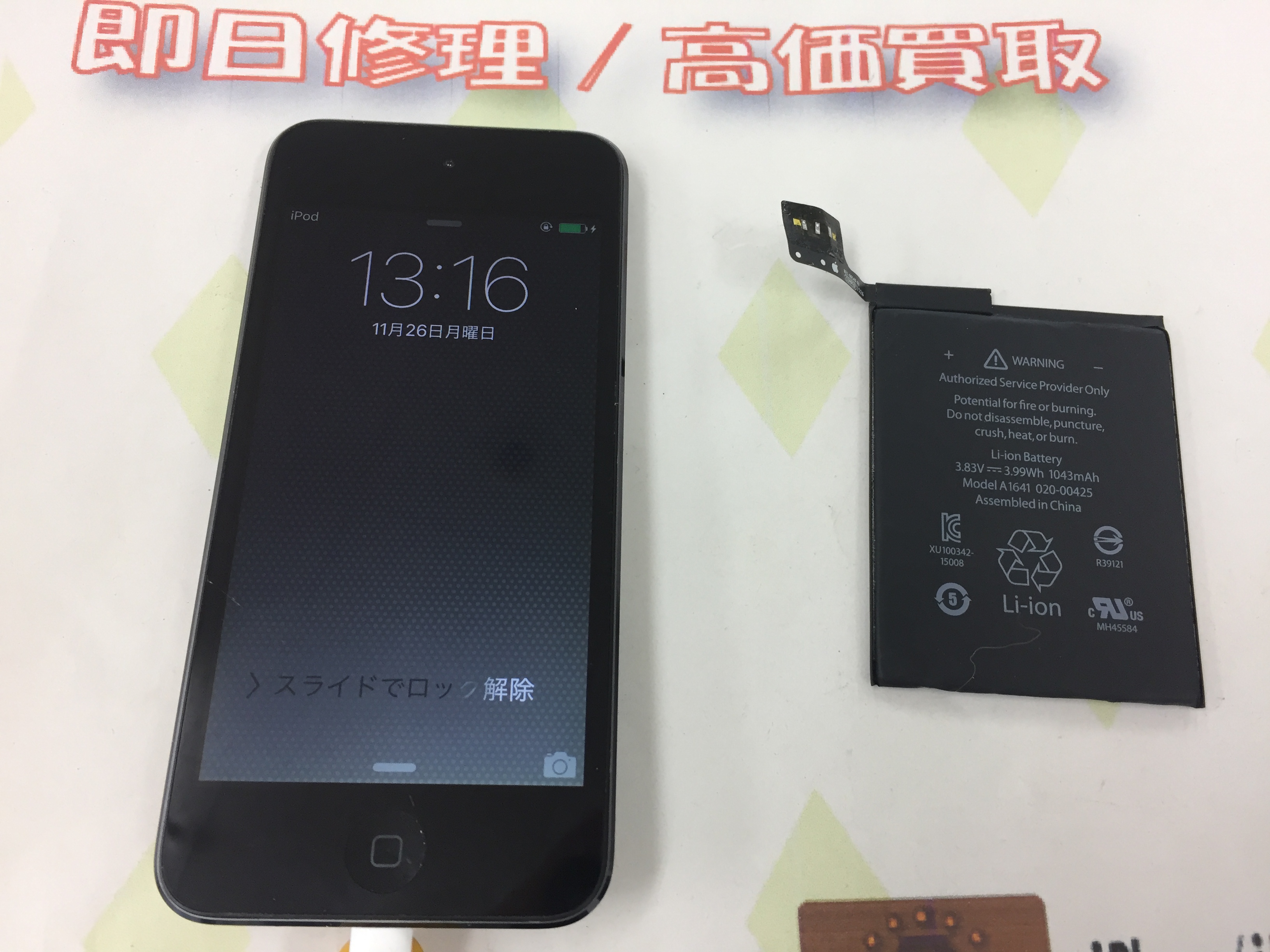 iPod touch6世代 バッテリー交換 ¥8,800(税込)