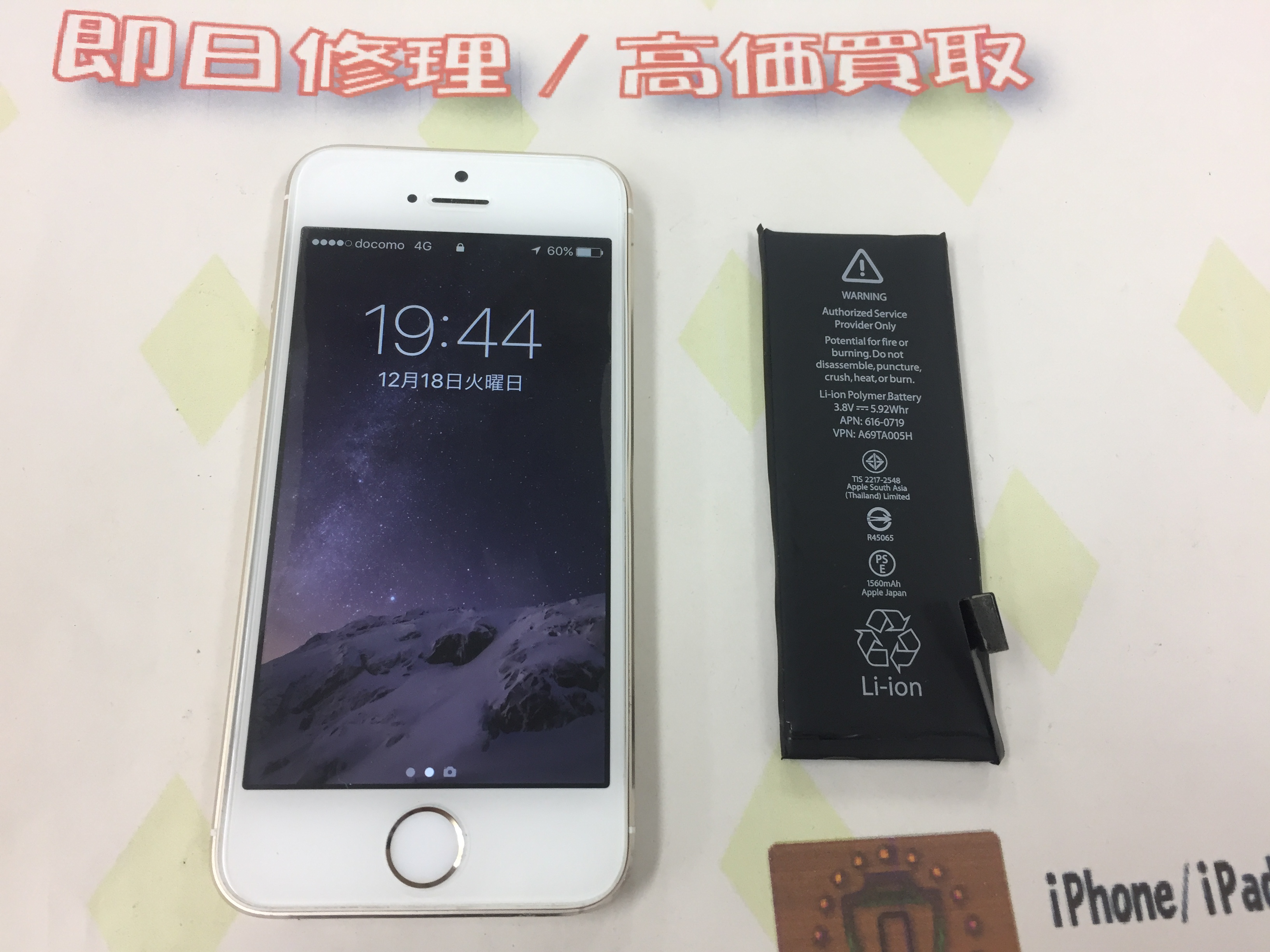 ◆加古川市よりiPhone5s バッテリー交換 -2018 12/18-