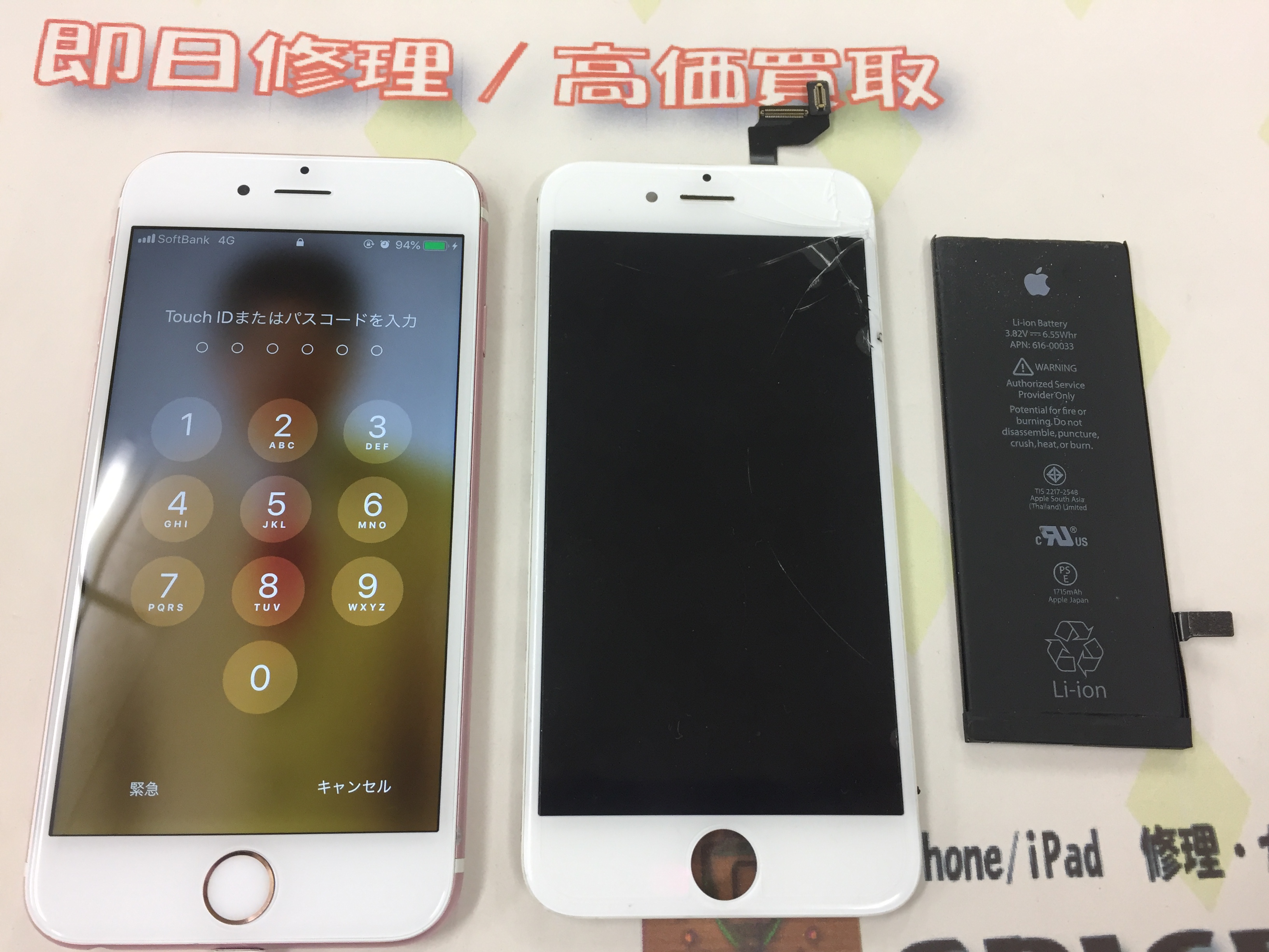 加古川市よりiPhone6s ガラス割れ&バッテリー交換修理をご依頼いただきました。