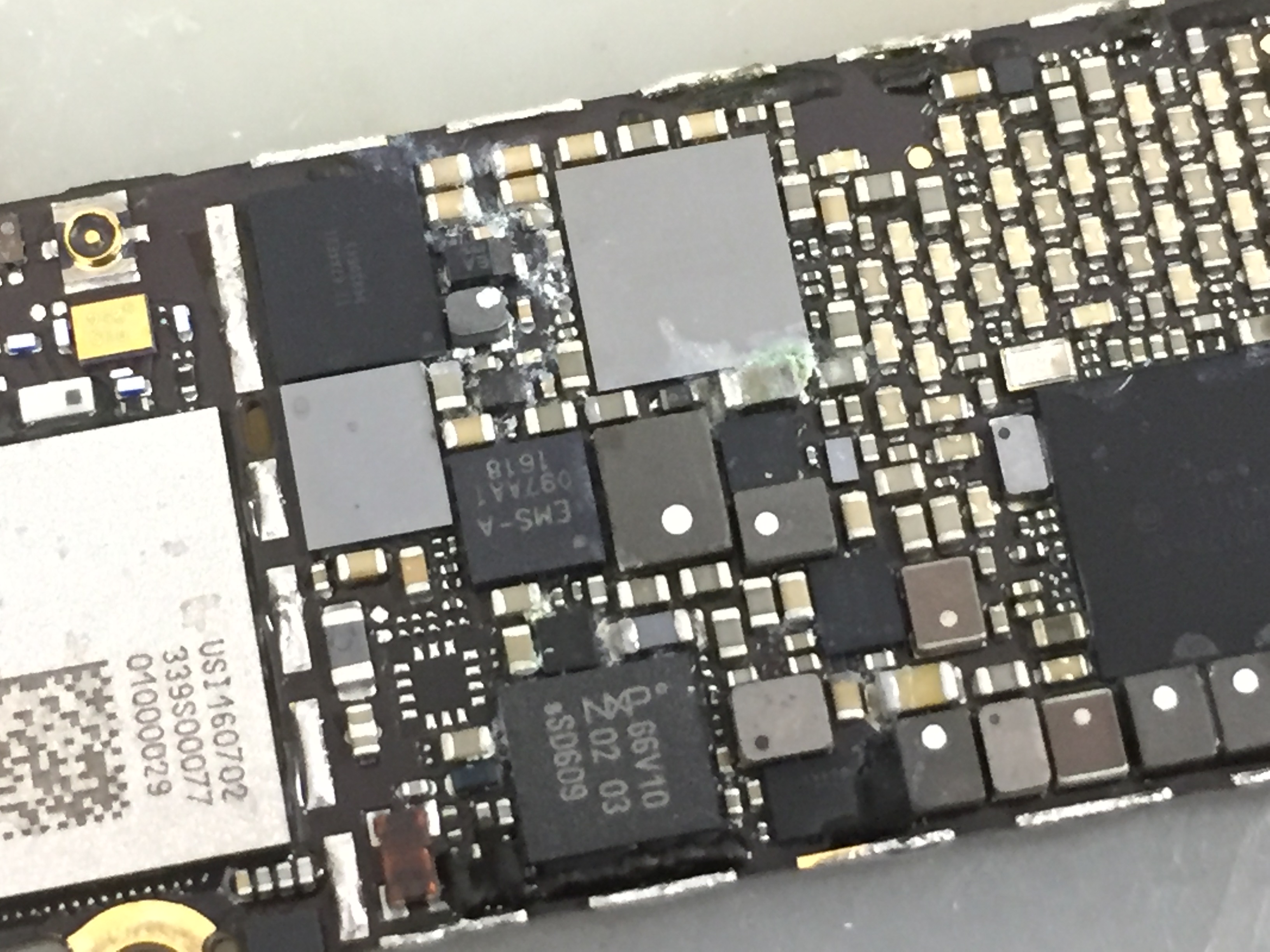 しかし、電波に関係する基板上のモデムチップが損傷しておりSIMカードを読み込まない状態となっておりました。