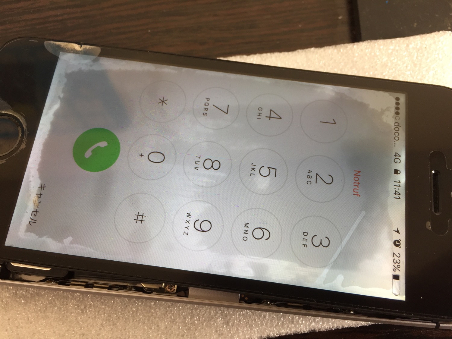 しかし、水没の影響で液晶内にシミが出来ておりかなり見にくい状態。