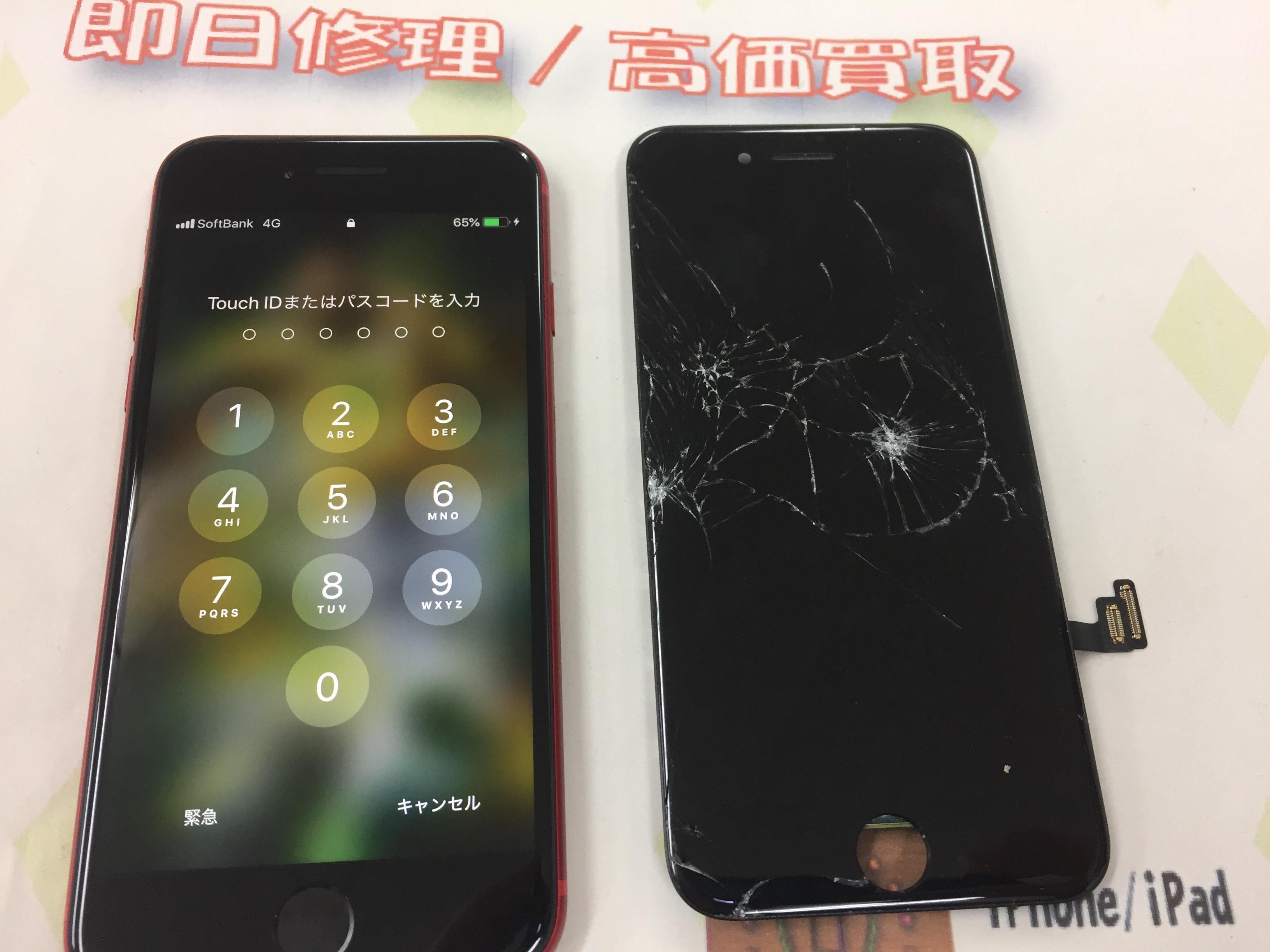 画面が激しく割れておりましたがお時間30分ほどで新品同様に修理完了です。