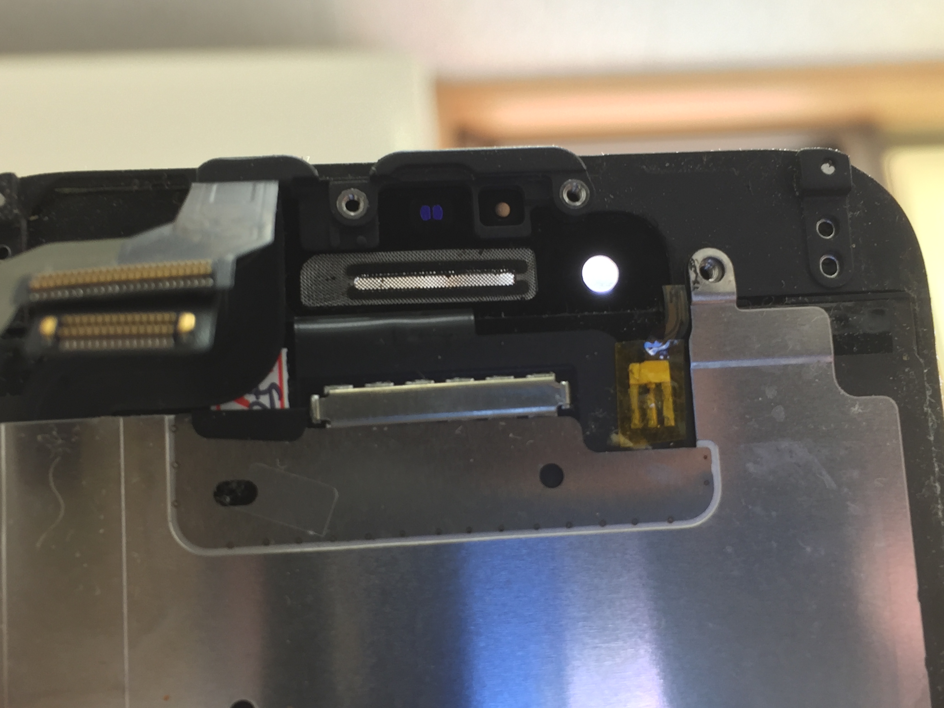 Siriが音声を拾ってくれない場合は画面上部のイヤースピーカー部分のマイクが故障しているかスピーカー部分のメッシュが汚れなどで塞がってしまい声を拾えなくなっているケースが考えられます。
