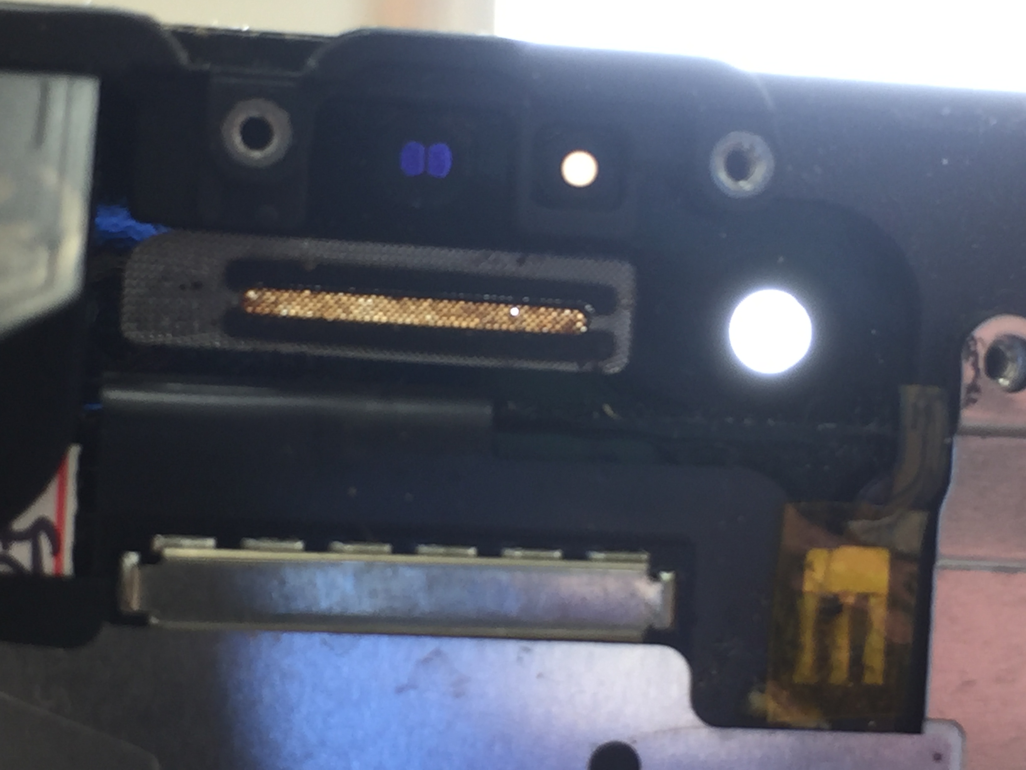 受付時に端末を確認させて頂くとメッシュ部分が汚れで完全に塞がれているのが確認出来ましたのでまずは分解し、メッシュ部分の洗浄を行ってみます。