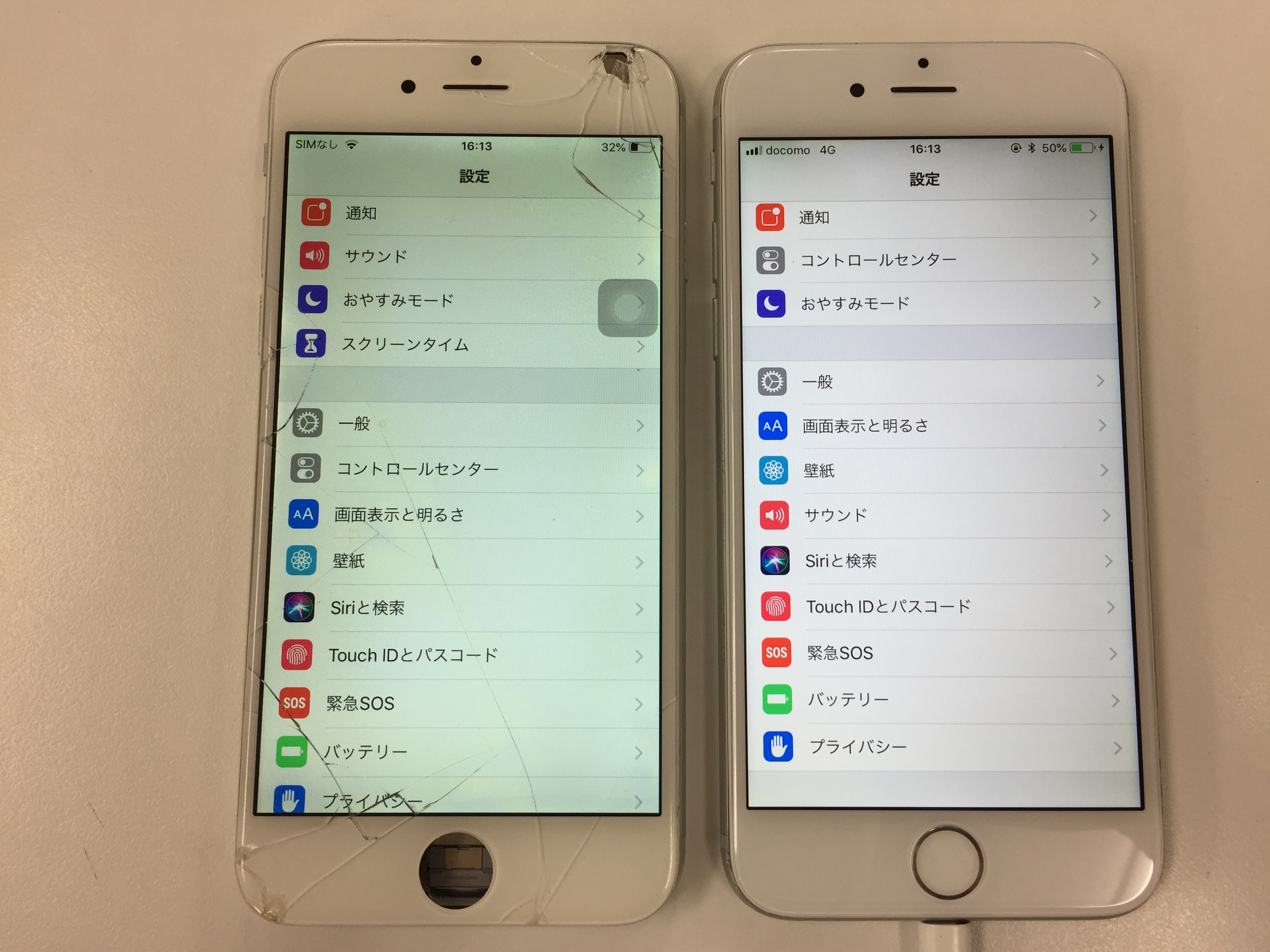 安価に修理可能な互換品の液晶パネルは純正品に比べると明るさ、色味、タッチパネルの感度などが大きく異なり価格なりの品質となります。