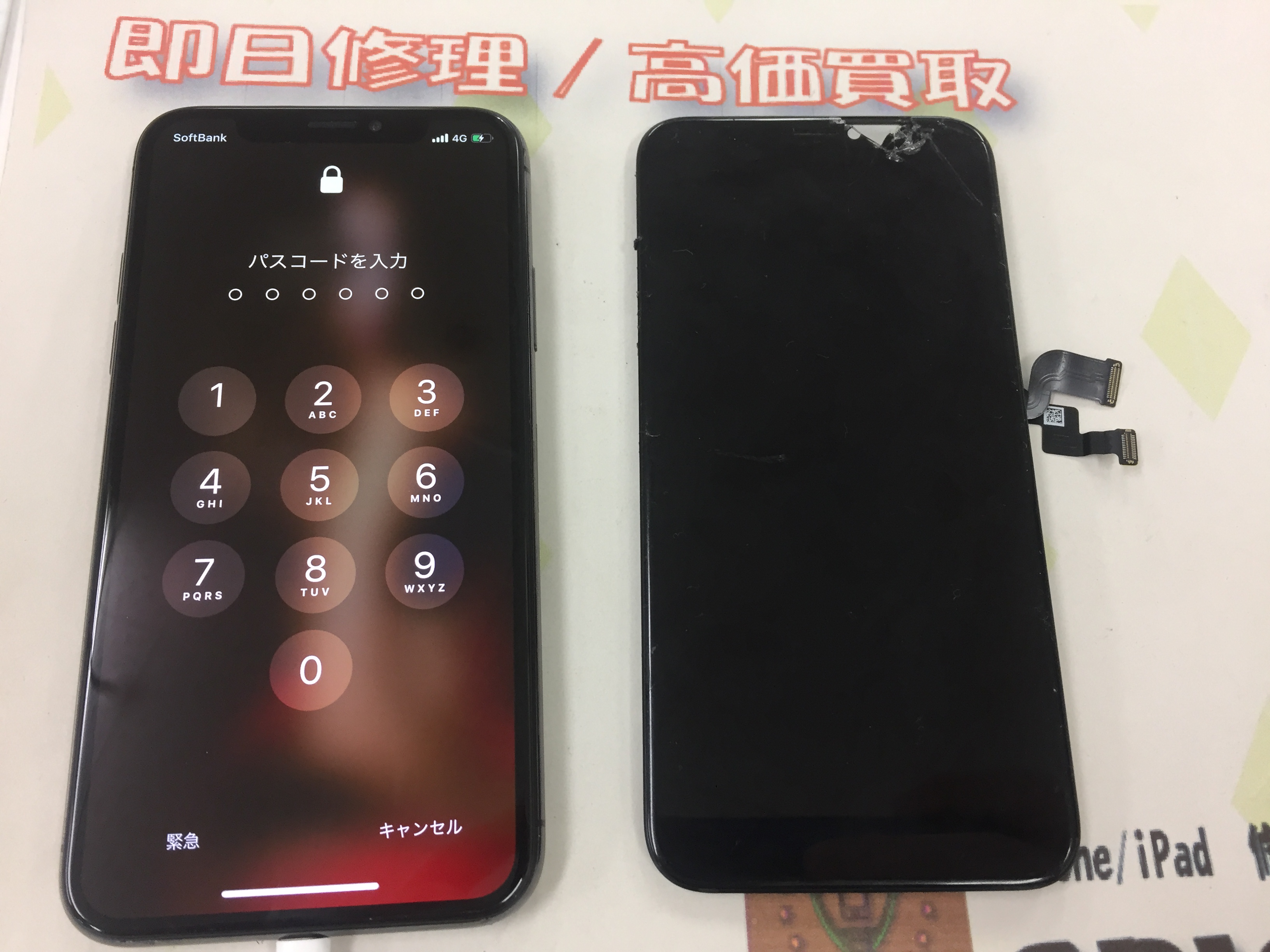 大阪府よりiPhone X ガラス割れ、タッチパネル不良修理をご依頼いただきました。