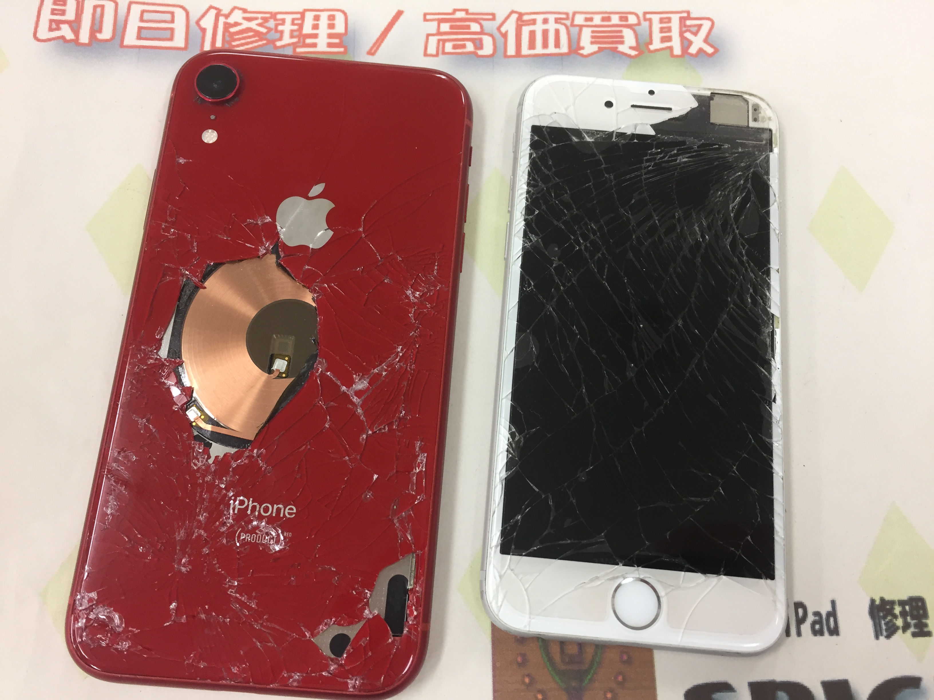 2台とも画面や背面ガラスが粉々に割れている状態でした。