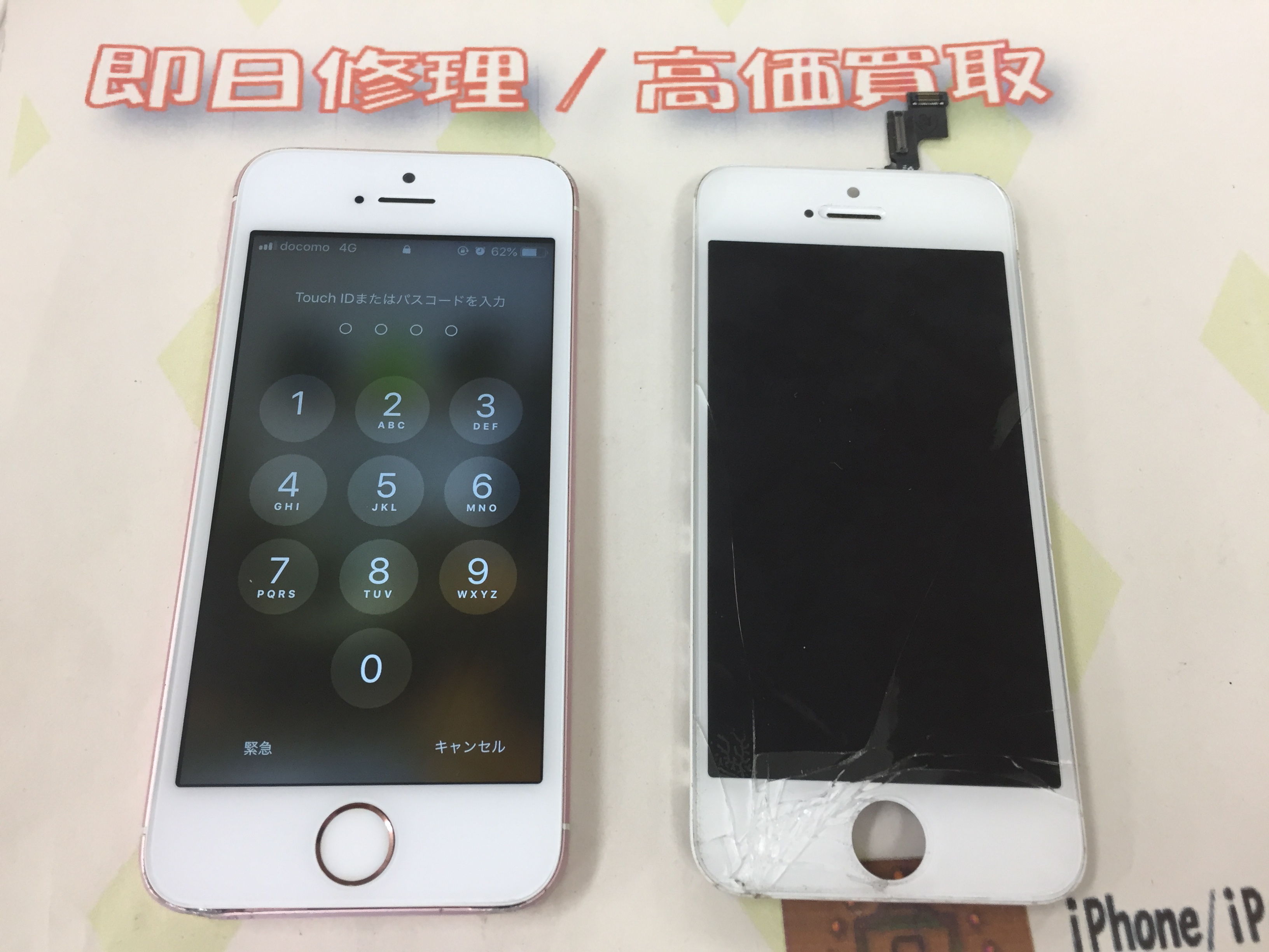 iPhone SE ガラス割れ→互換パーツ修理 ¥7,800(税込)