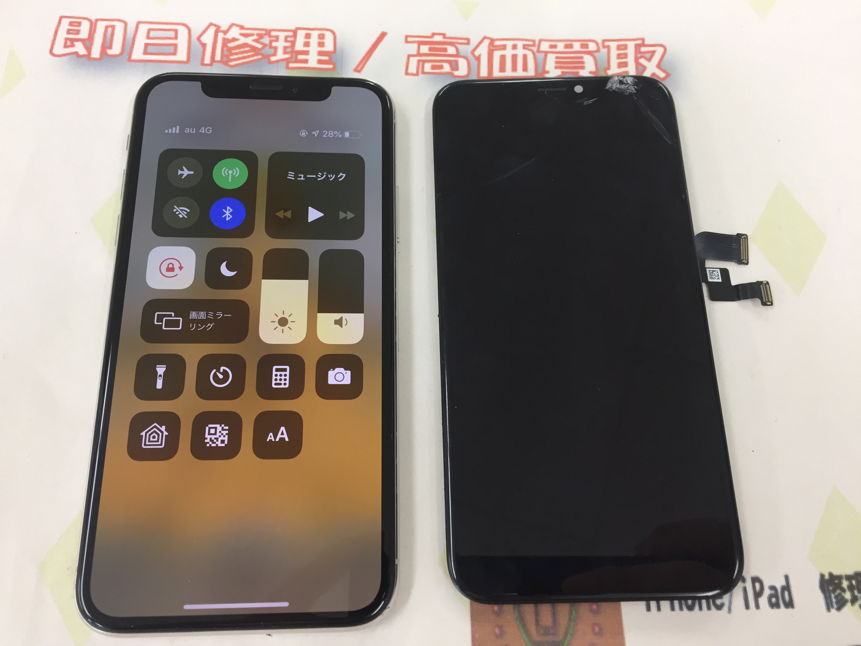 iPhone X ガラス割れ→互換パーツ(有機EL)修理 ¥28,800(税込)