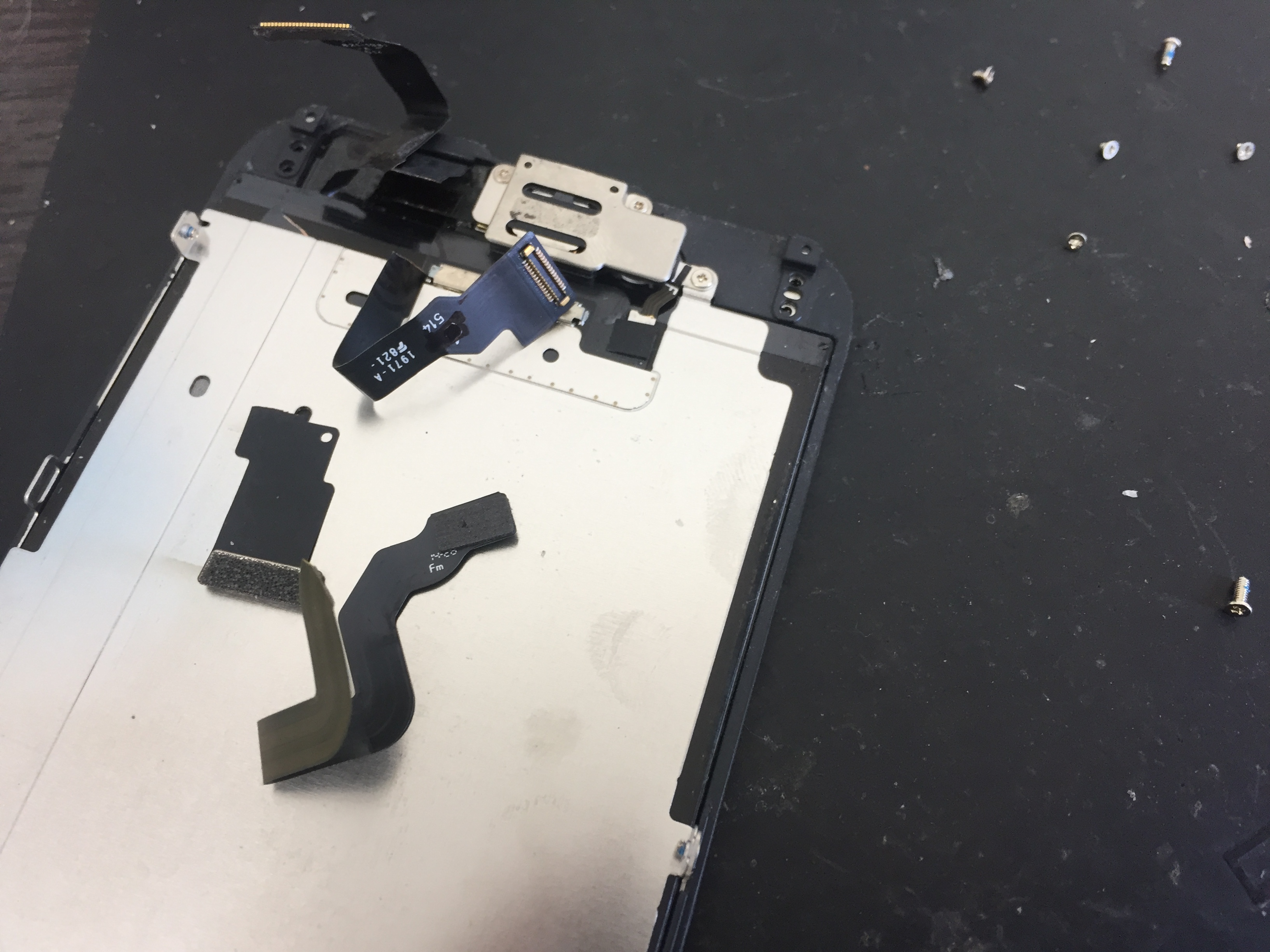 受付時に内部の状態を確認すると完全に画面が分離しており液晶、インカメラやホームボタンの中継ケーブルなどが千切れておりました。
