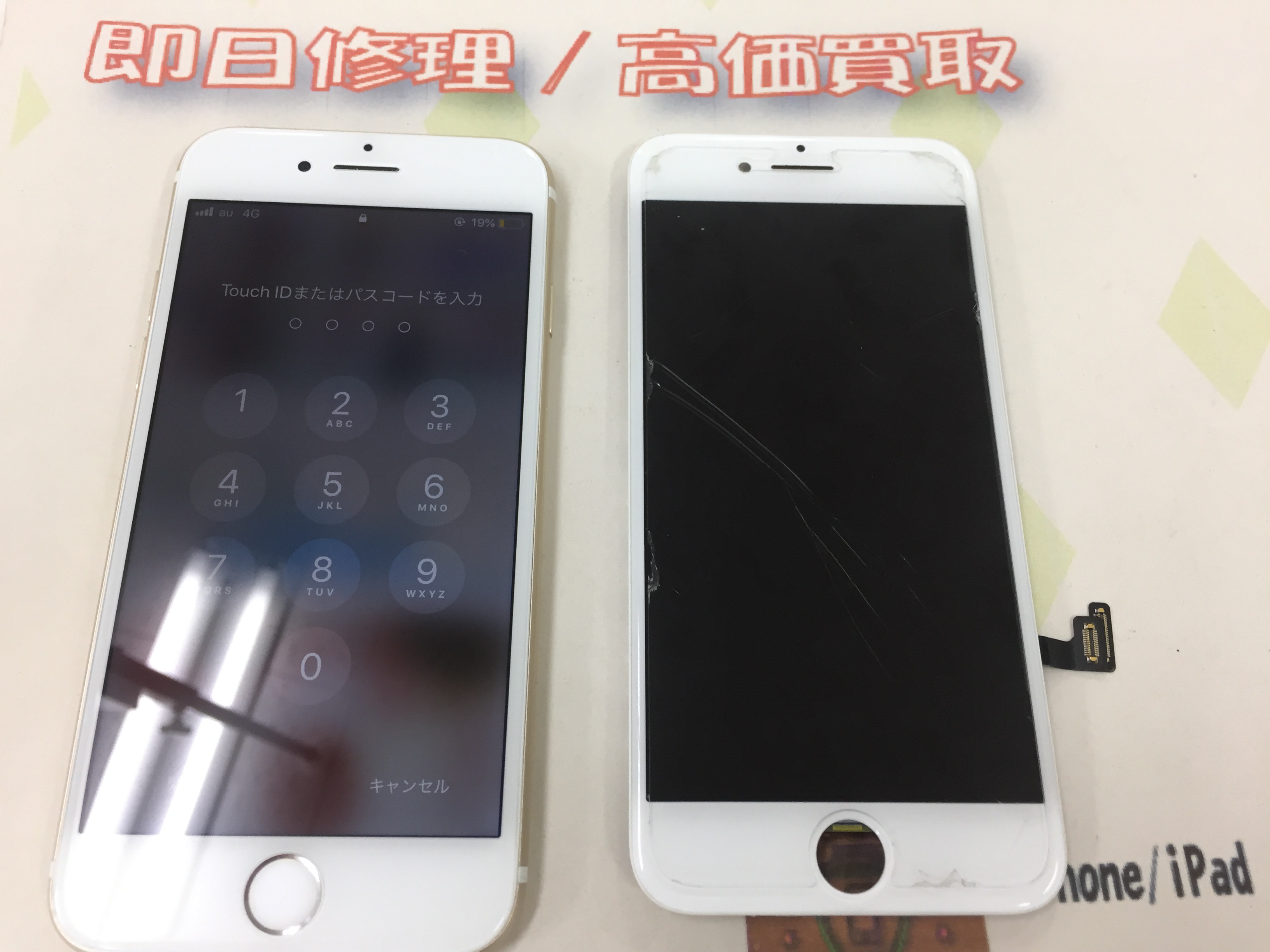 修理後も明るさやタッチパネルの感度なども元の画面と変わらずそのままで修理可能です。