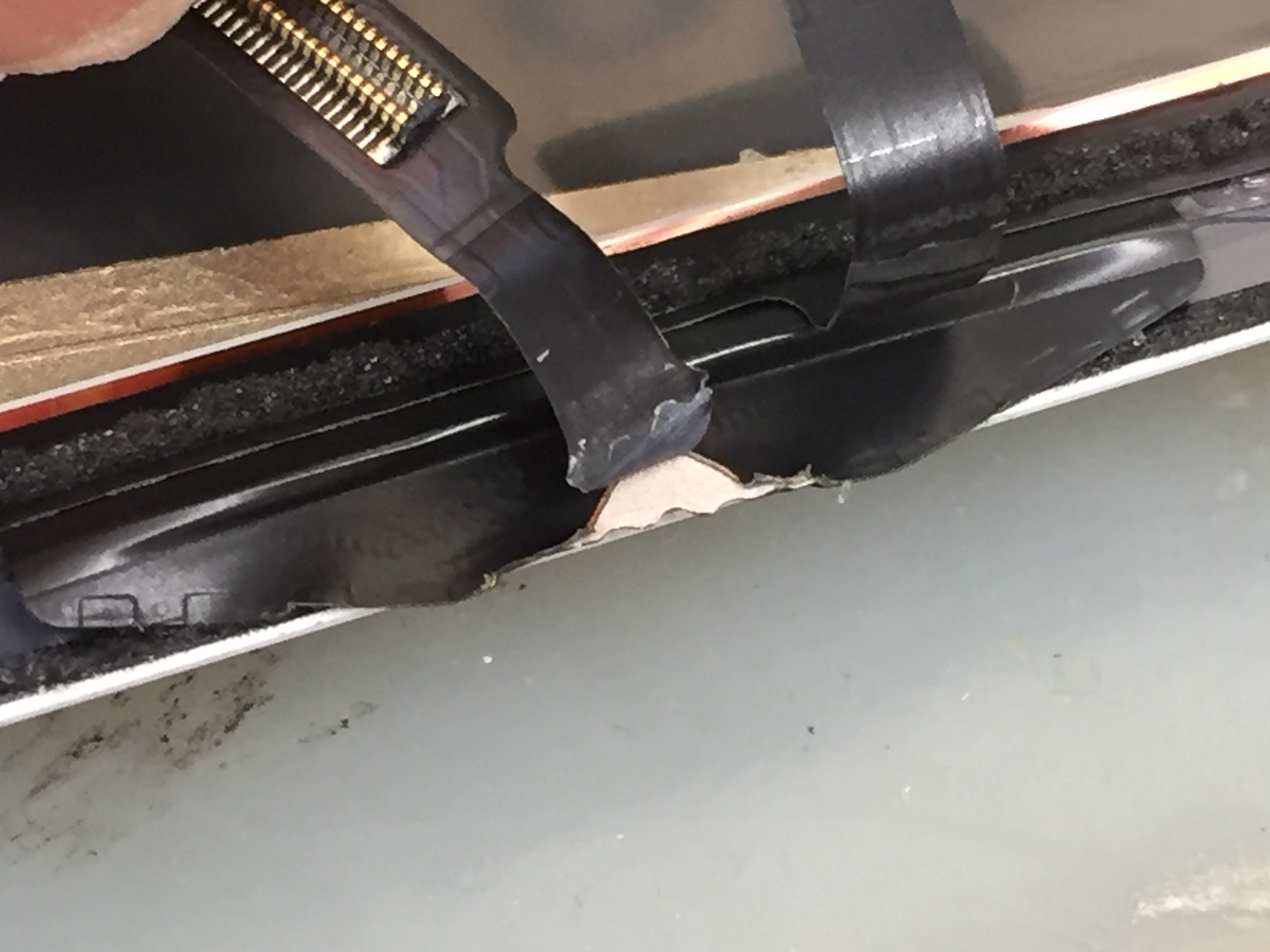 その影響でタッチパネルのケーブル部分が裂けてしまっております。