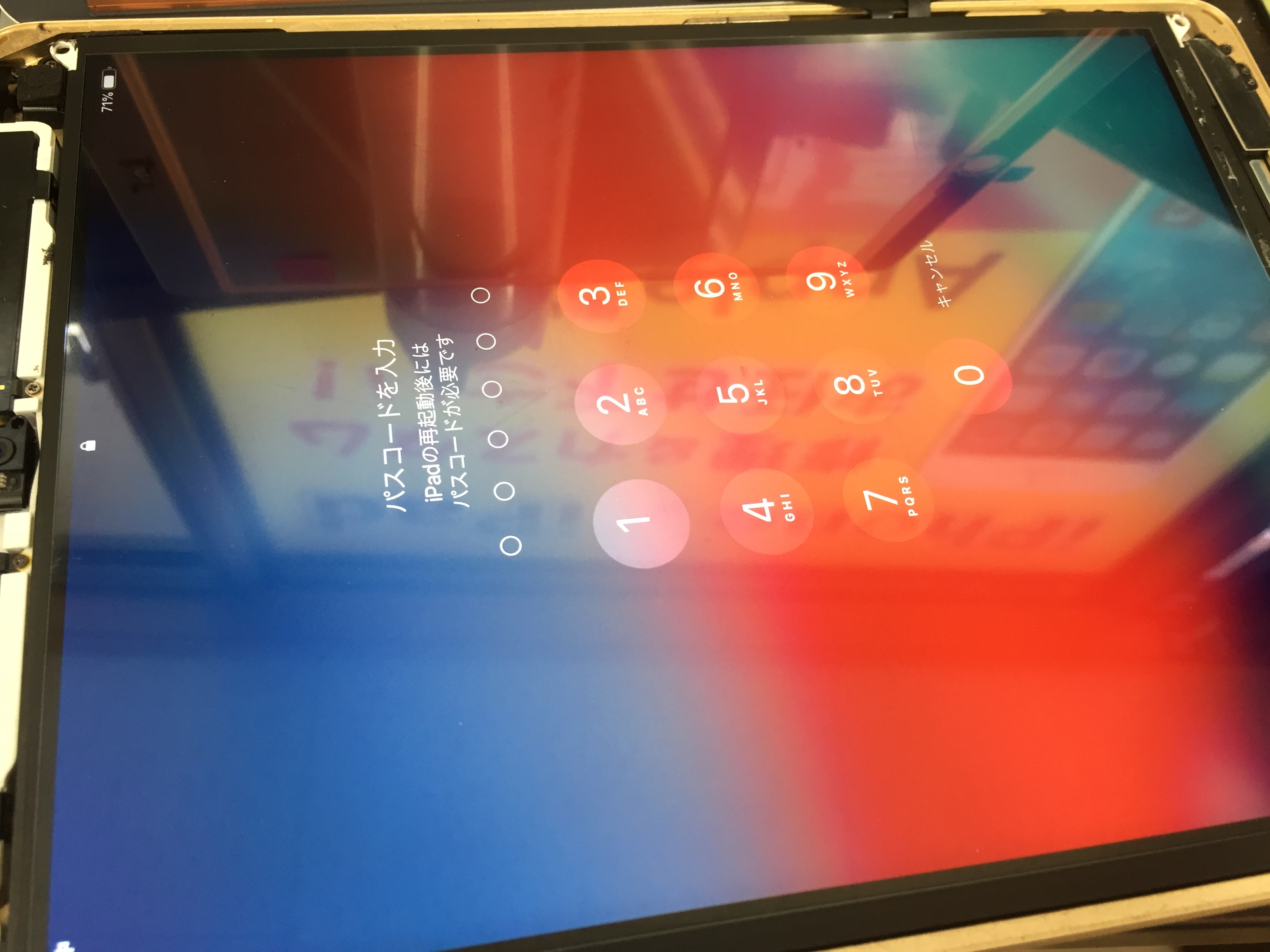 新しい液晶パネル、タッチパネルを仮付けし動作確認を行います。