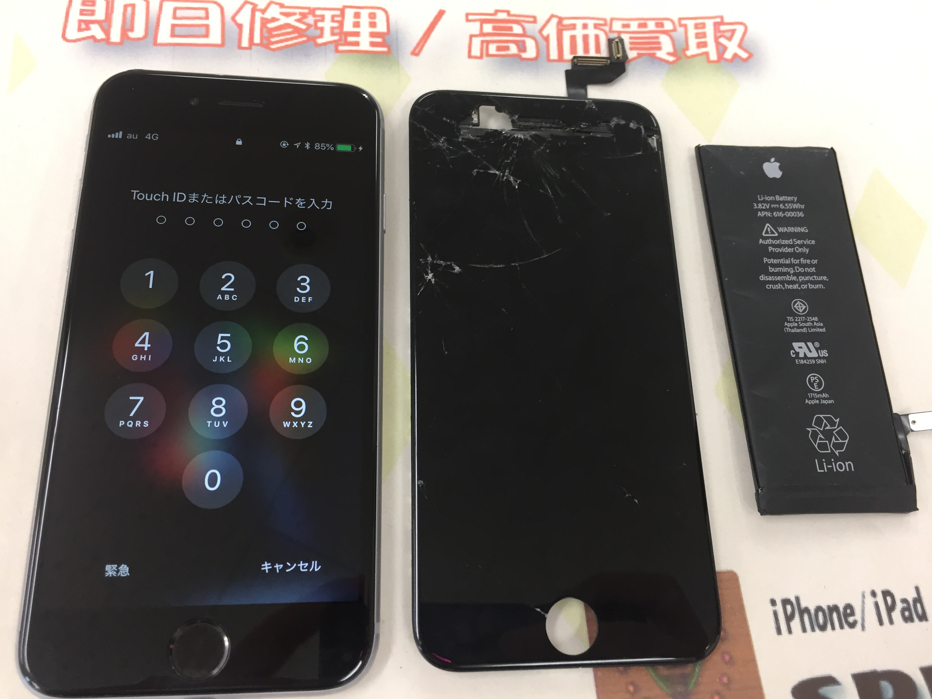 小野市よりiPhone6s ガラス割れ、バッテリー交換をご依頼いただきました。