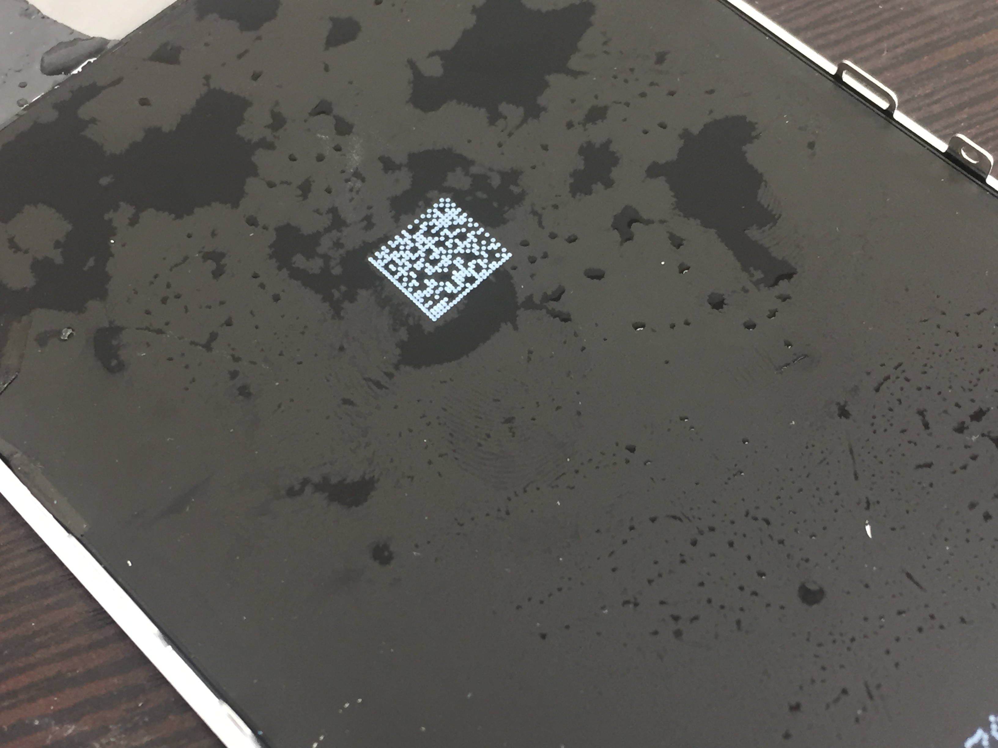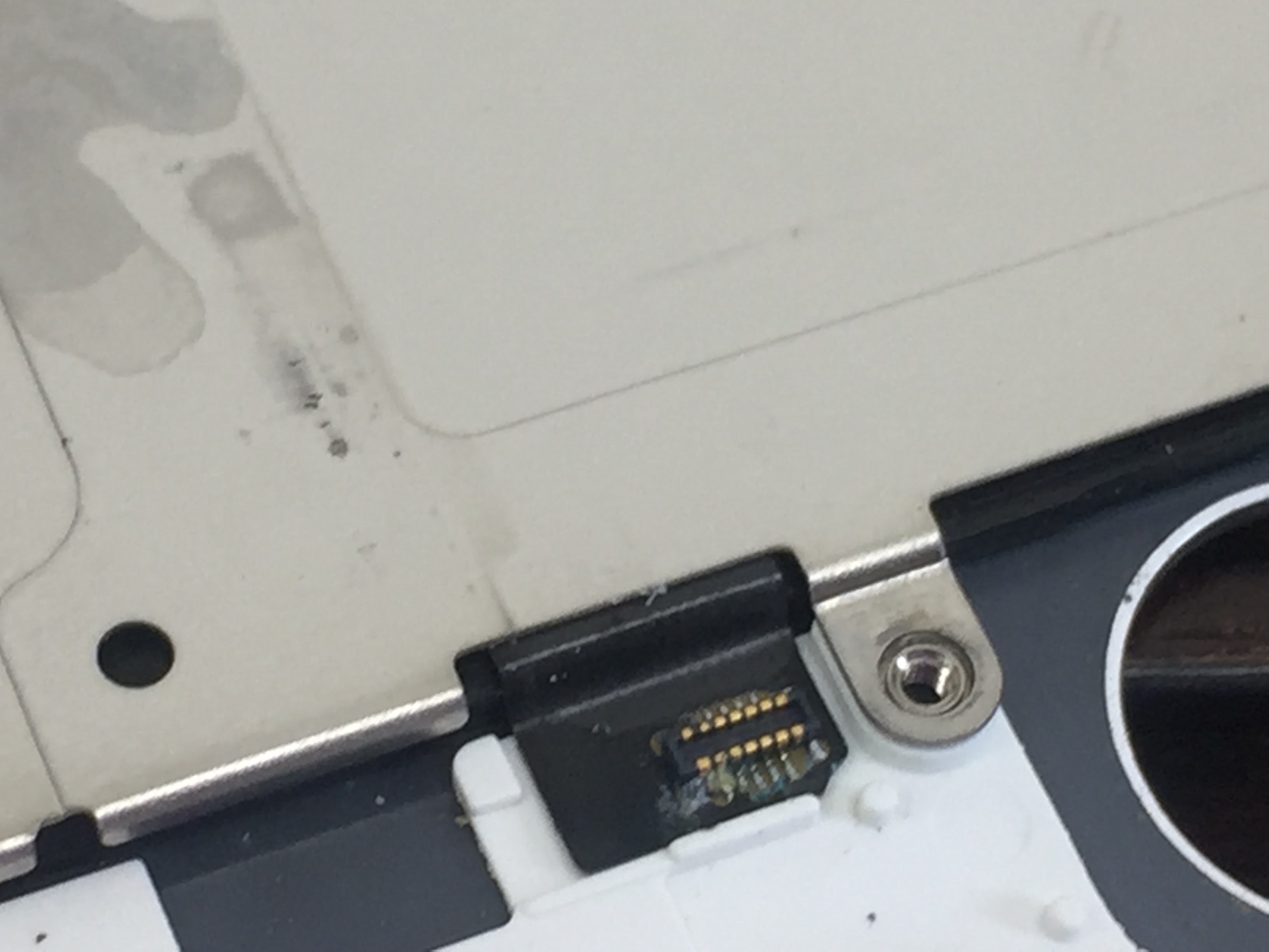 内部を確認させて頂くと本体下部に少し水が入り込んでおり、ホームボタン部品に腐食が出ておりましたのでサービスで内部の洗浄作業を行い画面を交換します。