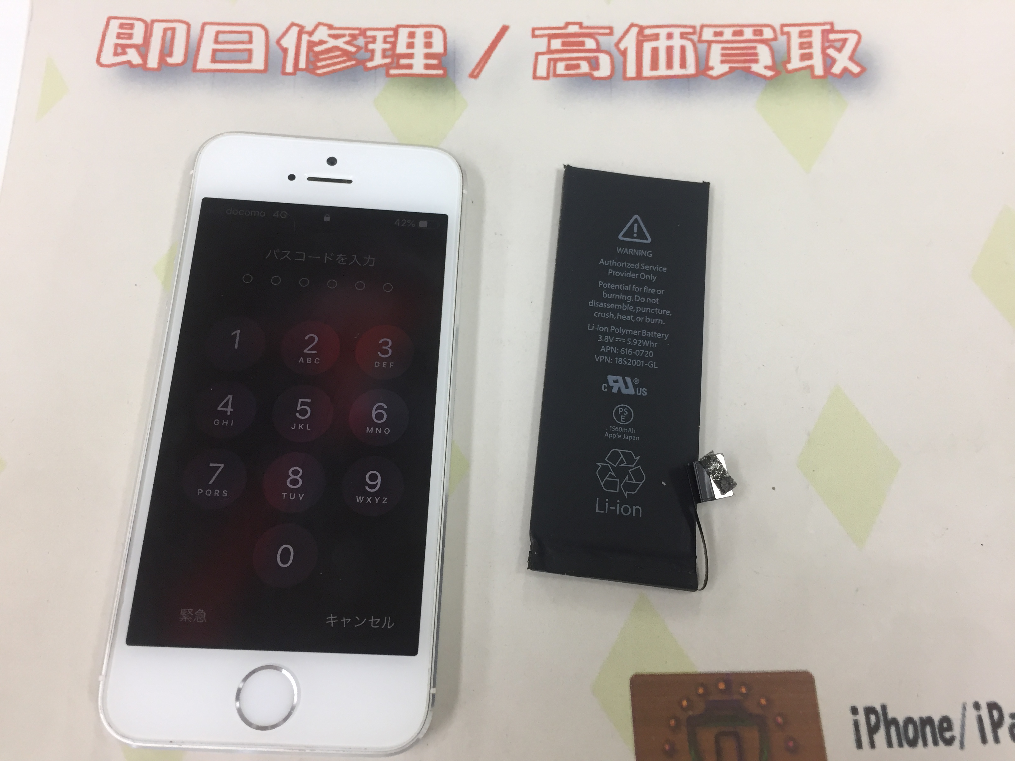 iPhone5s バッテリー交換 ¥4,800(税込)