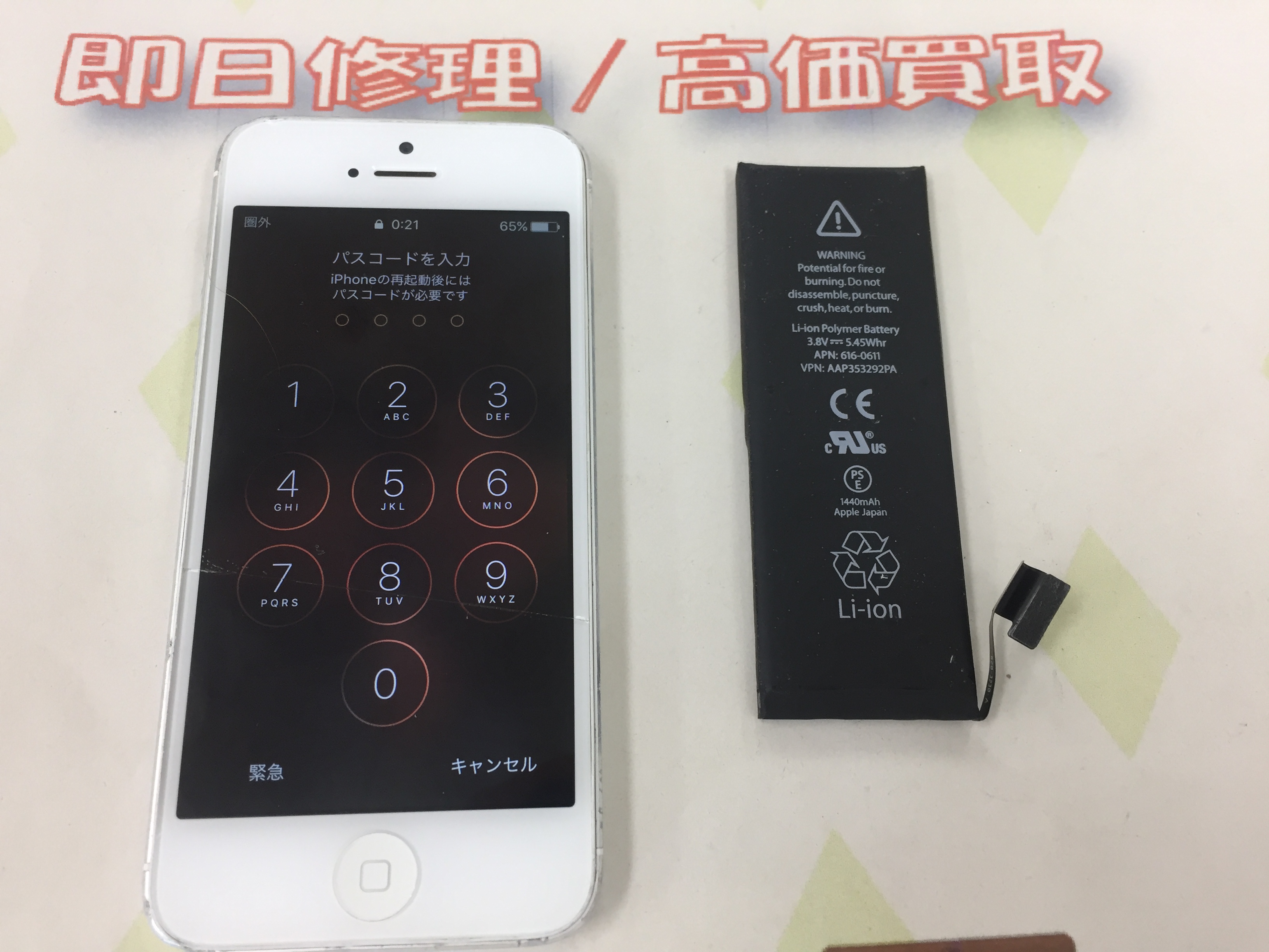 iPhone5 起動不可→バッテリー交換 ¥4,800(税込)