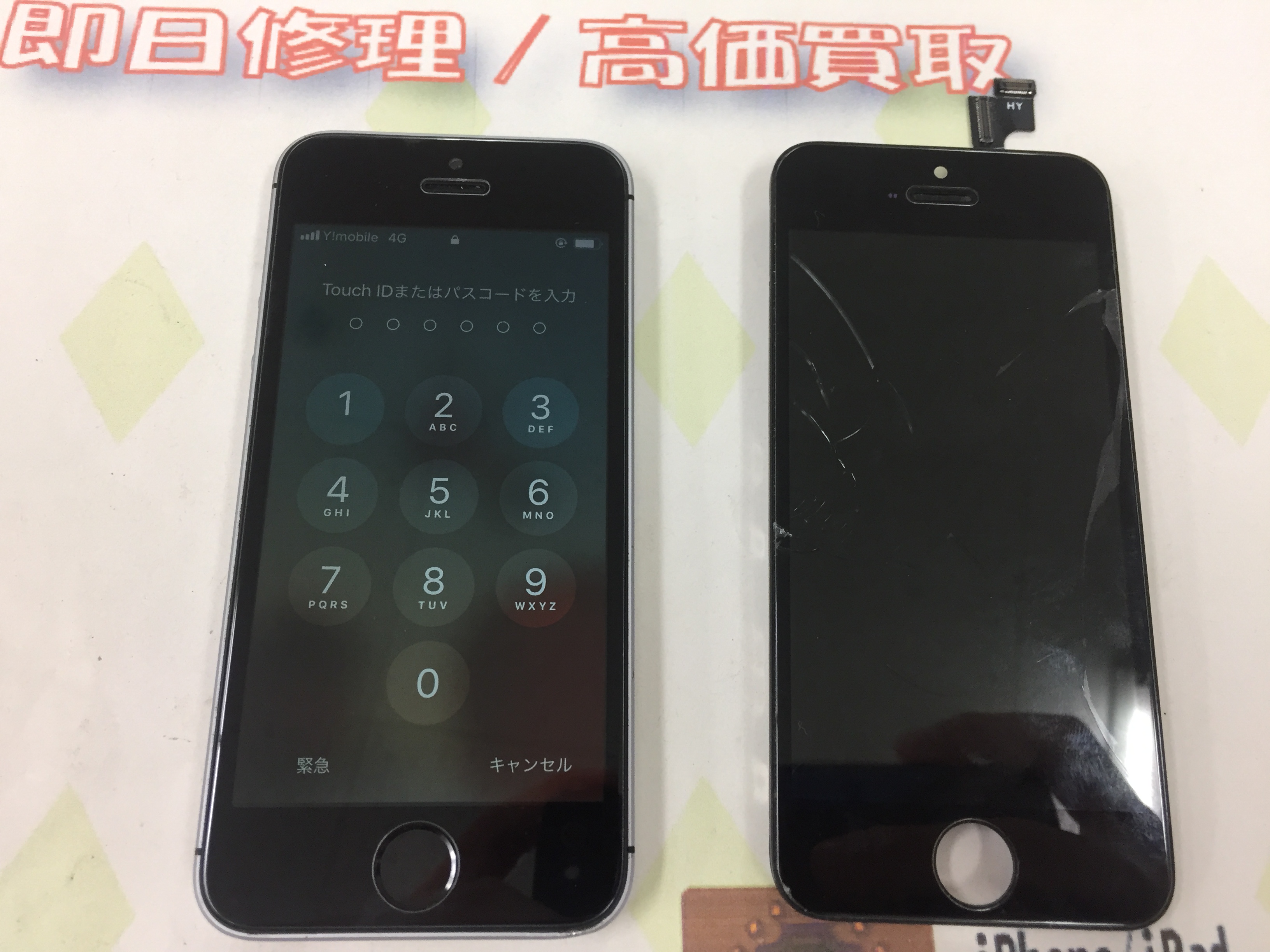 iPhone SE 液晶不良→互換パーツでの修理 ¥7,800(税込)