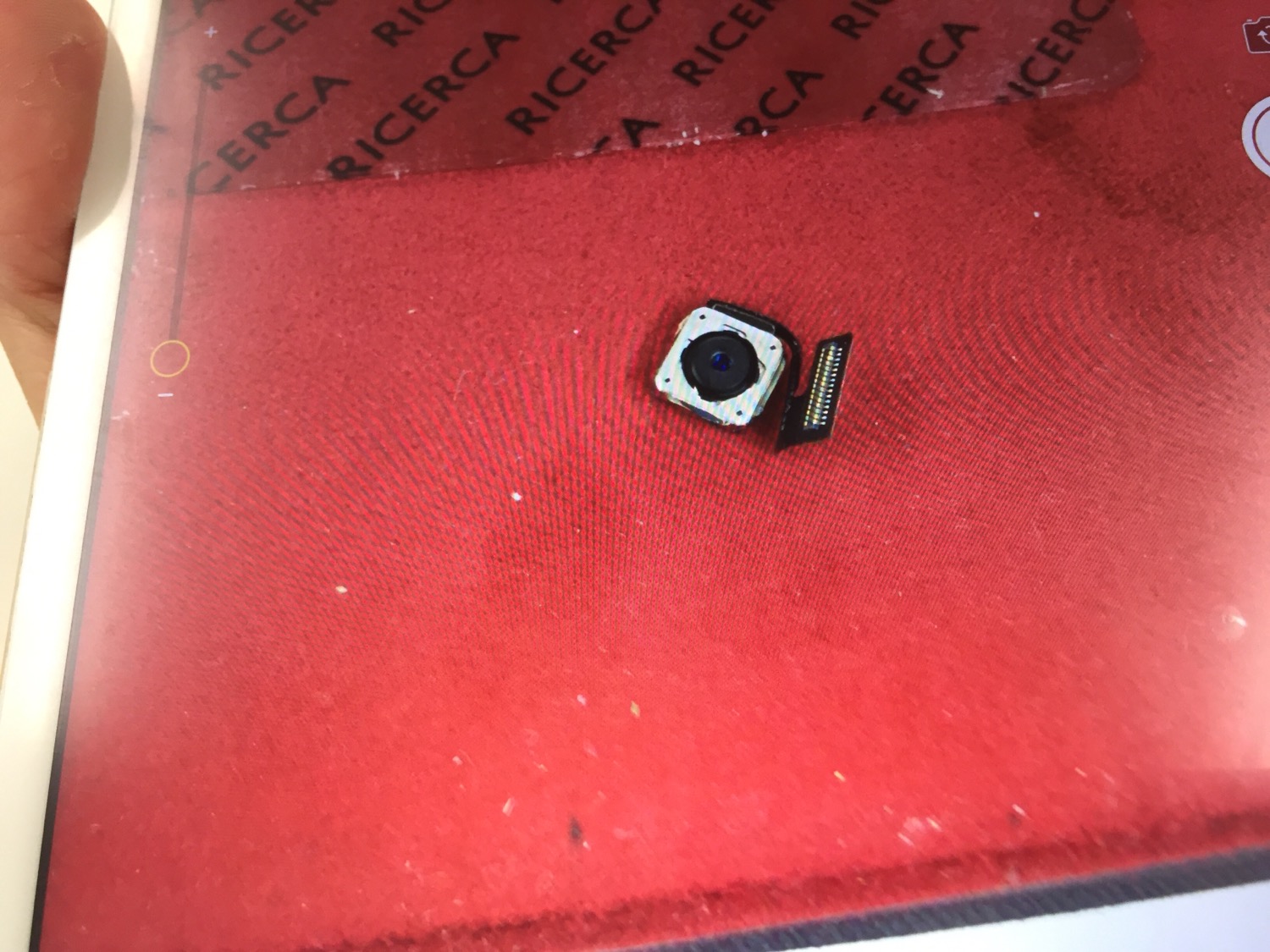 アウトカメラを起動させると右下辺りに黒い影のようなスジが映り込むとご来店です。