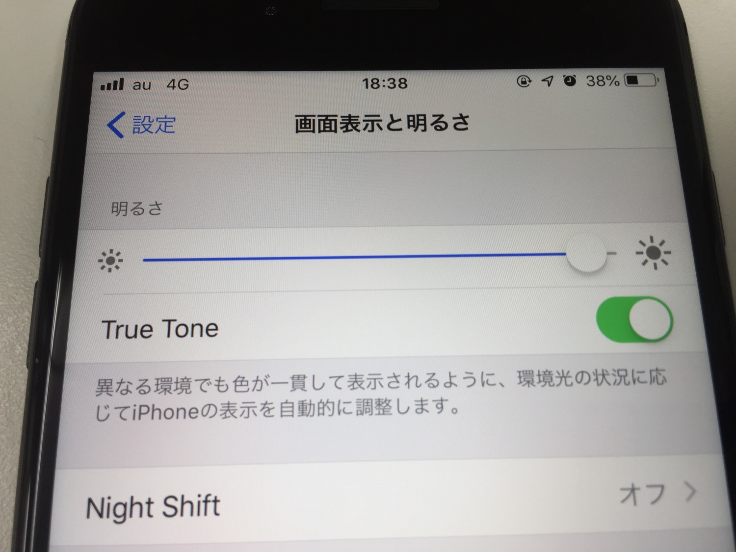 特にiPhone8以降の機種は画面修理の際に互換パーツで修理すると設定→画面表示と明るさ→True Toneという機能が消えて使用出来なくなります。