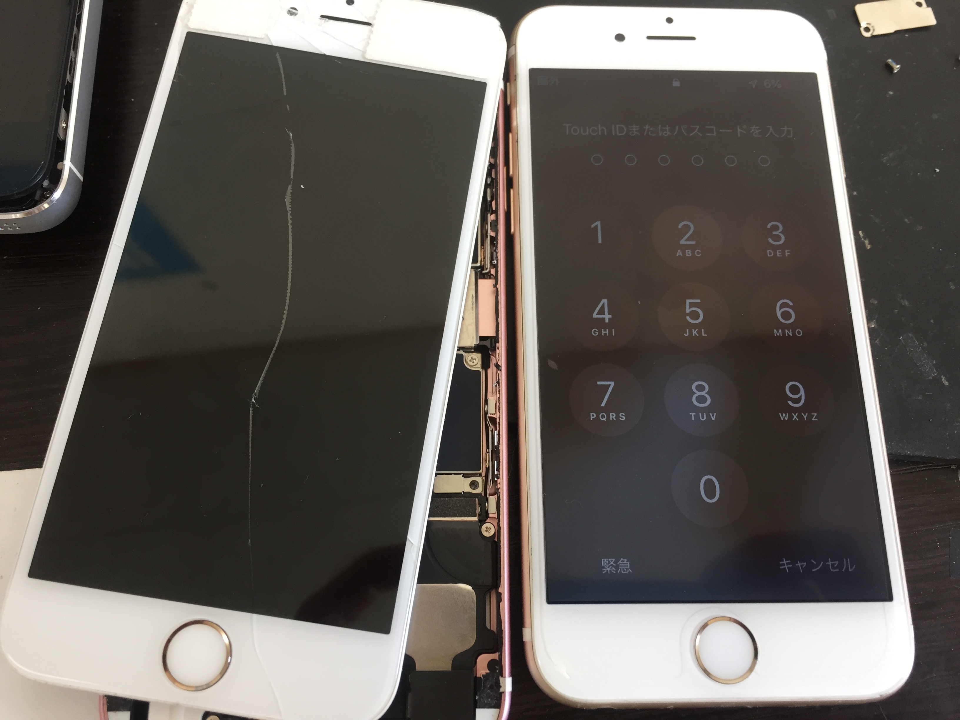 画面割れですが今回はもう1台、別のiPhone6sをお持ちでそちらの画面を取り付けして欲しいとのご要望です。