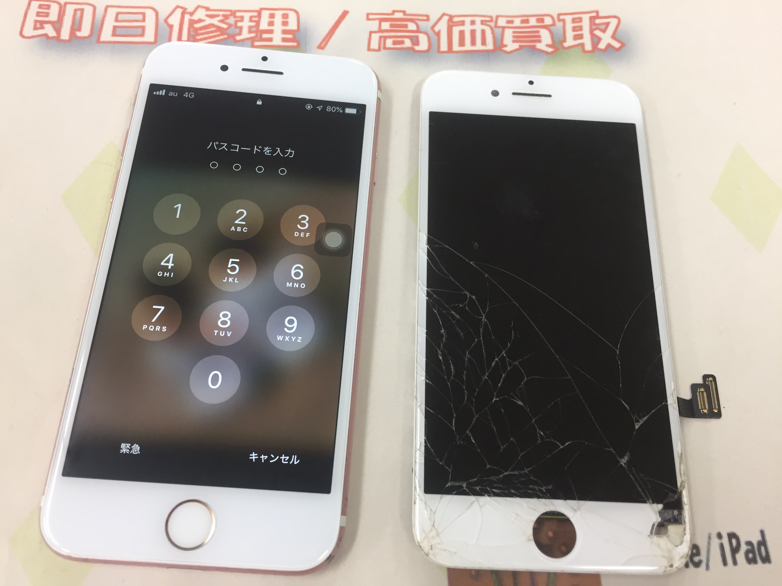 iPhone7 ガラス割れ、液晶タッチパネル不良→互換パーツでの修理 ¥9,800(税込)