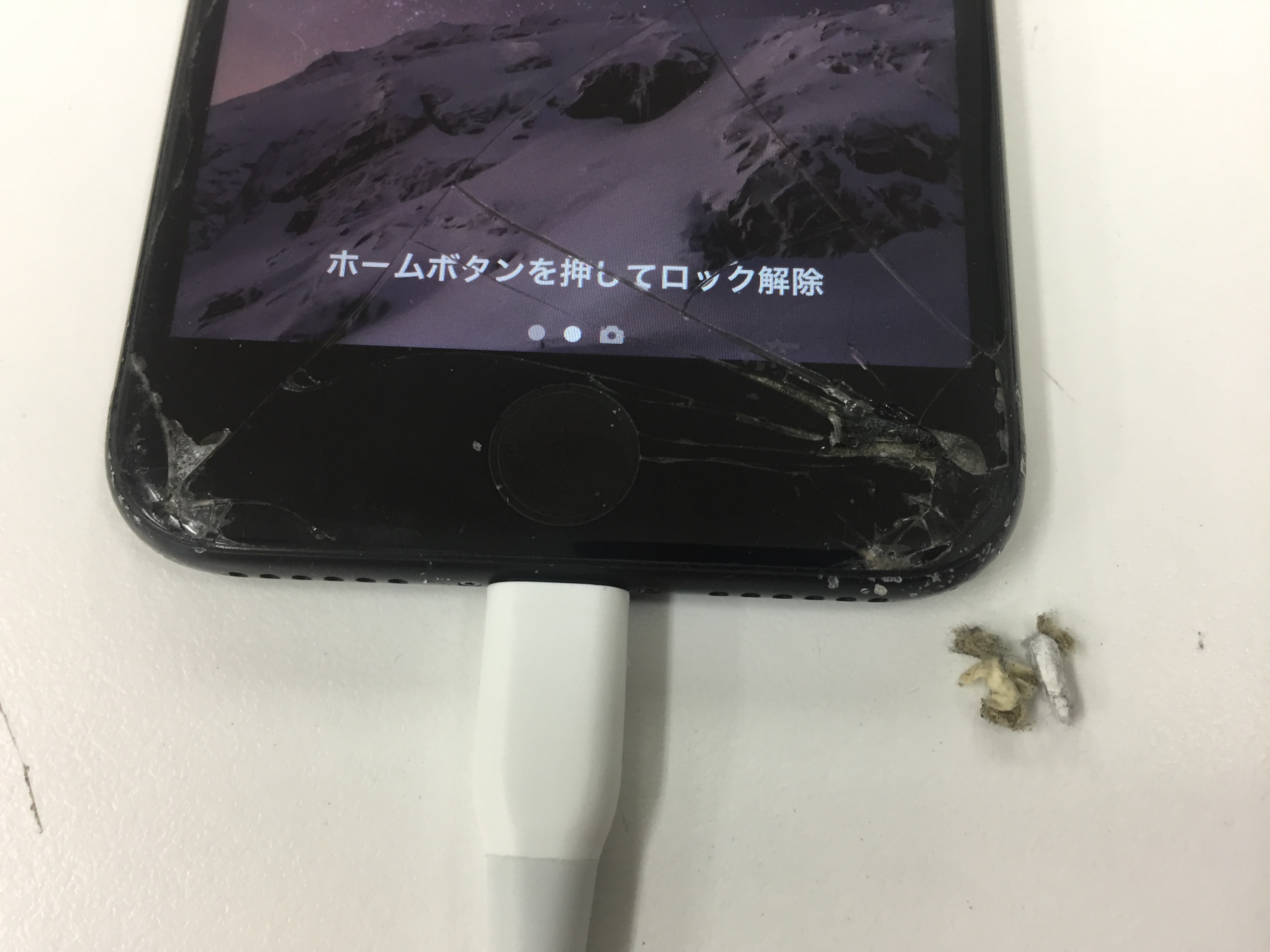それとは別に充電が出来なくなっているとの事でしたので受付時に確認するとケーブル差し込み口に大量の埃が詰まっておりケーブルが差し込めない状態でしたので無料クリーニングを行いこちらは無事に改善されました。