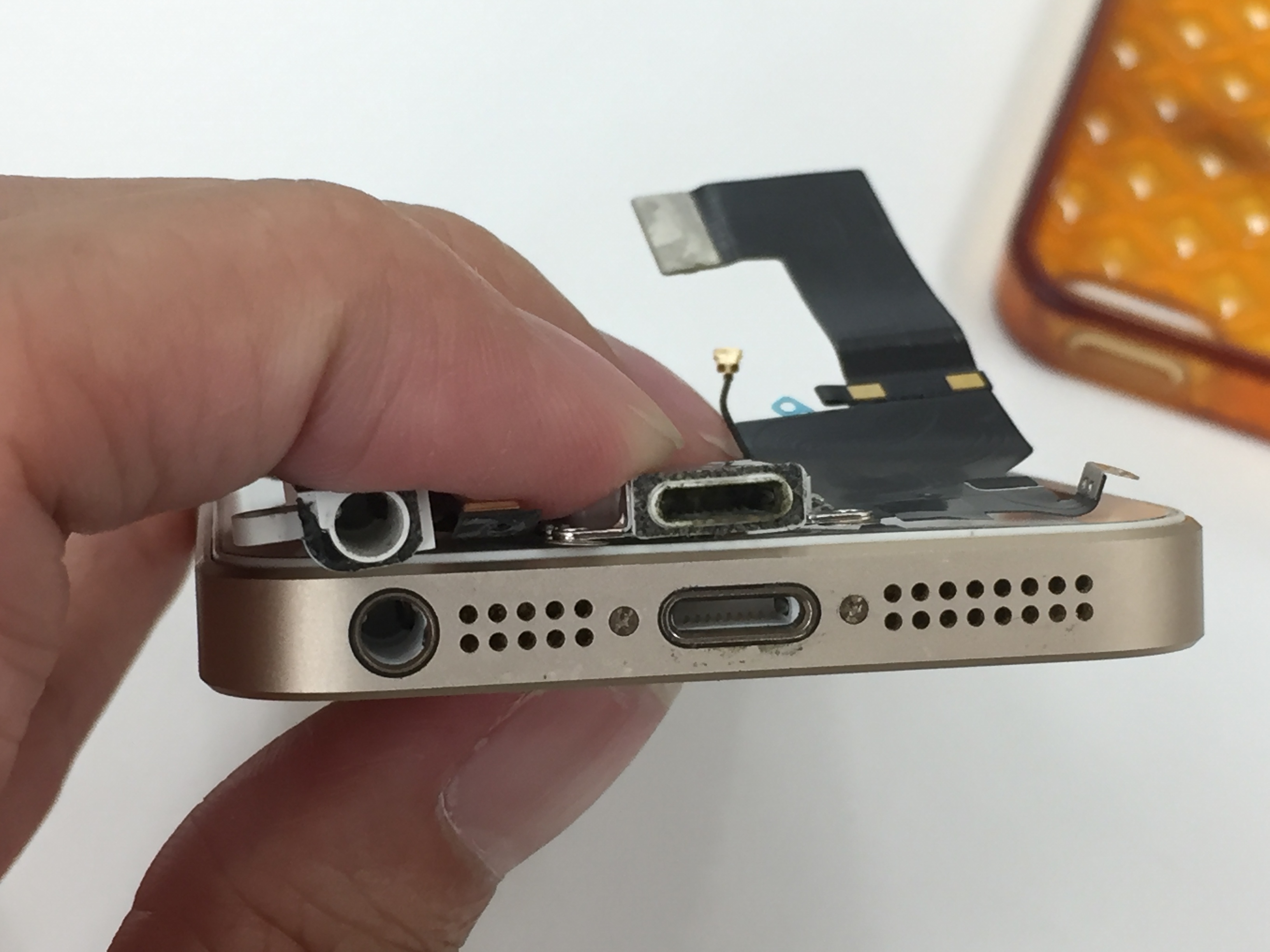 端末を確認させて頂くと充電口内の端子が1本すり減っており、そちらが原因で充電不良となっておりました。