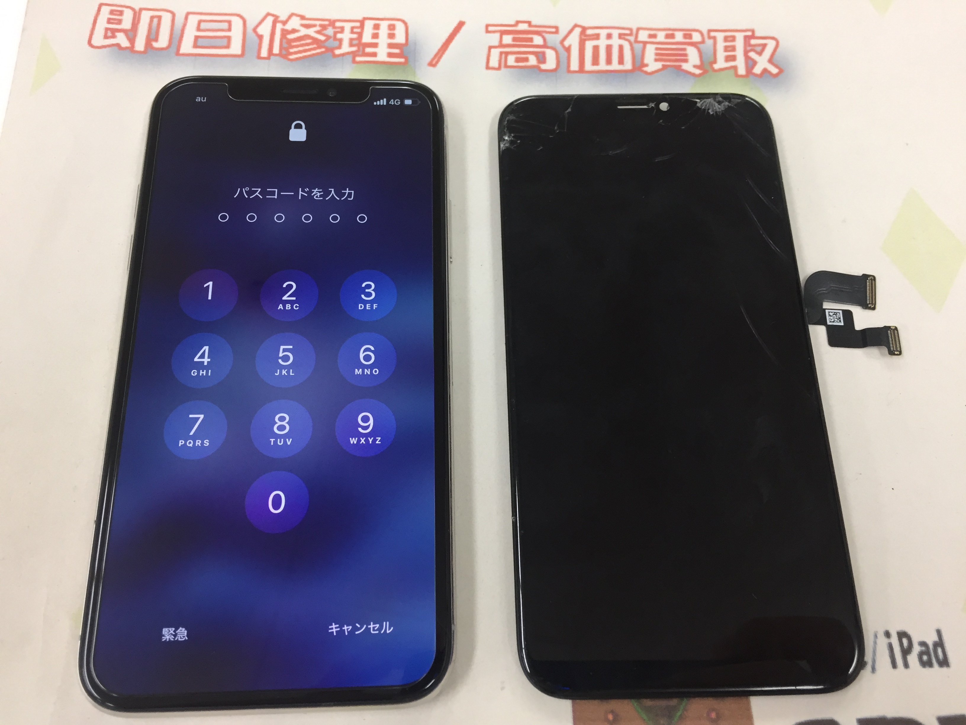 iPhone X ガラス割れ修理→有機ELパーツ ¥28,800(税込)