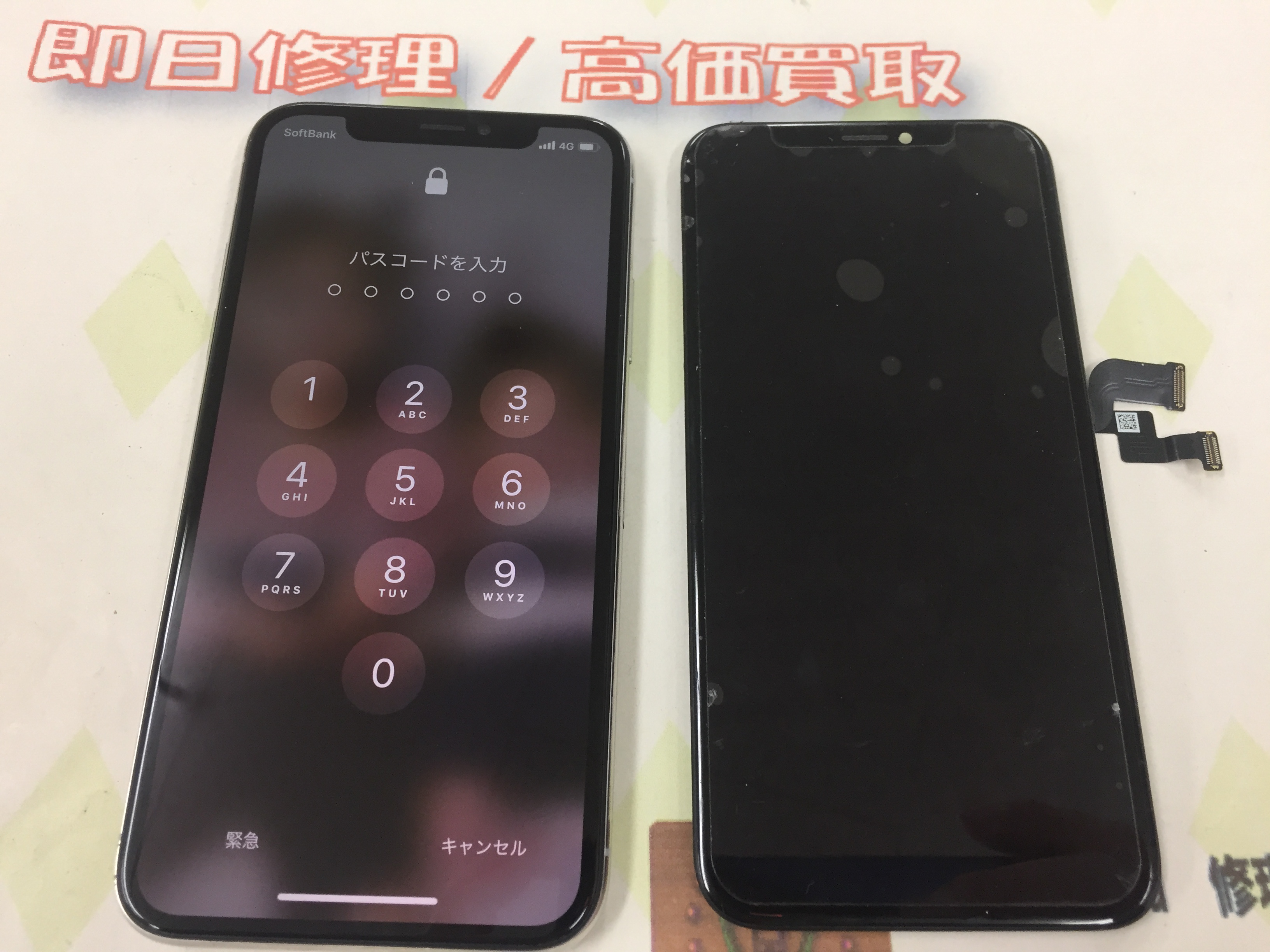 iPhone X 表示不良修理→有機ELパーツ ¥28,800(税込)