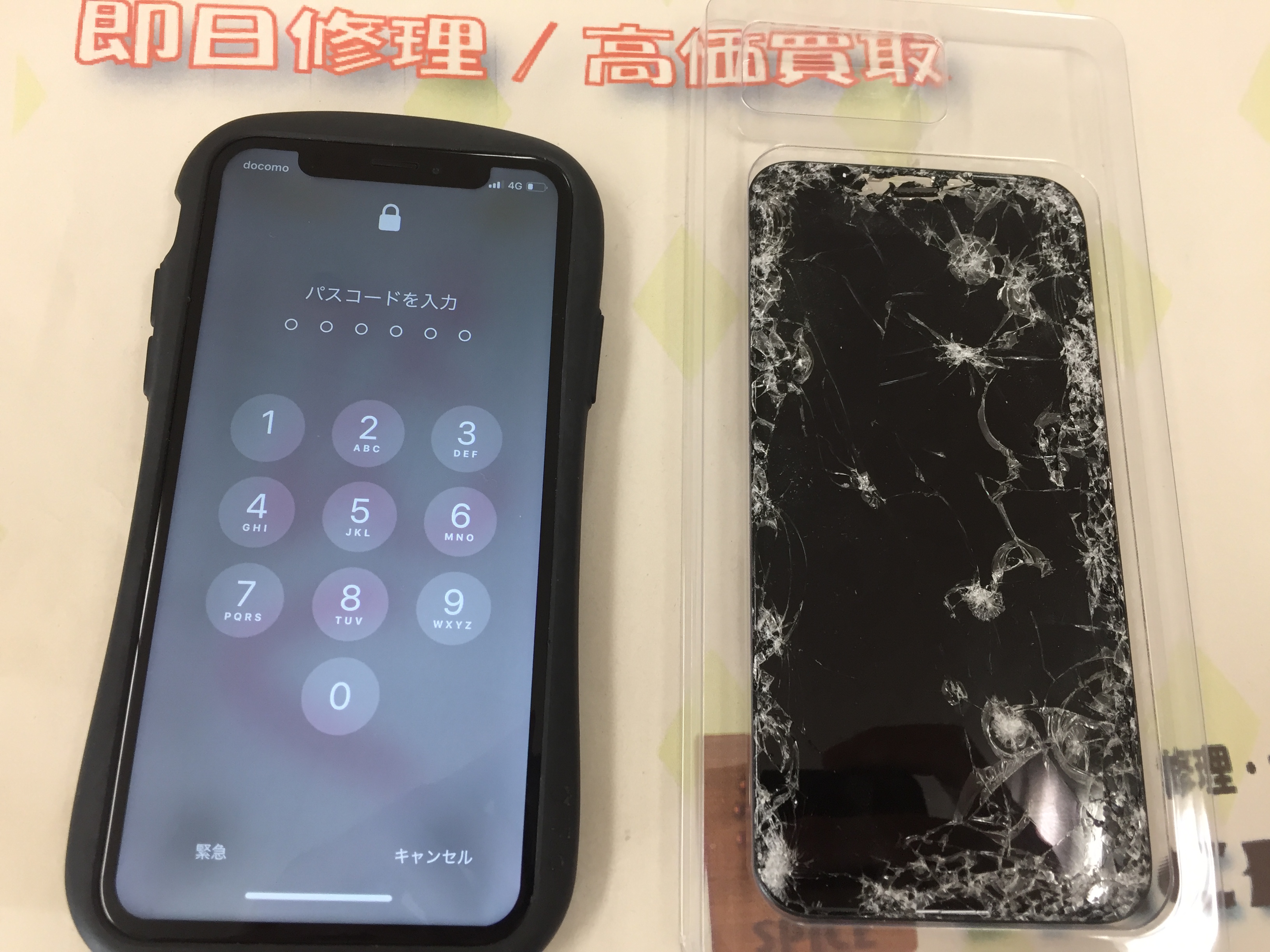 加古川市よりiPhone XS ガラス割れ、表示不良修理をご依頼いただきました。