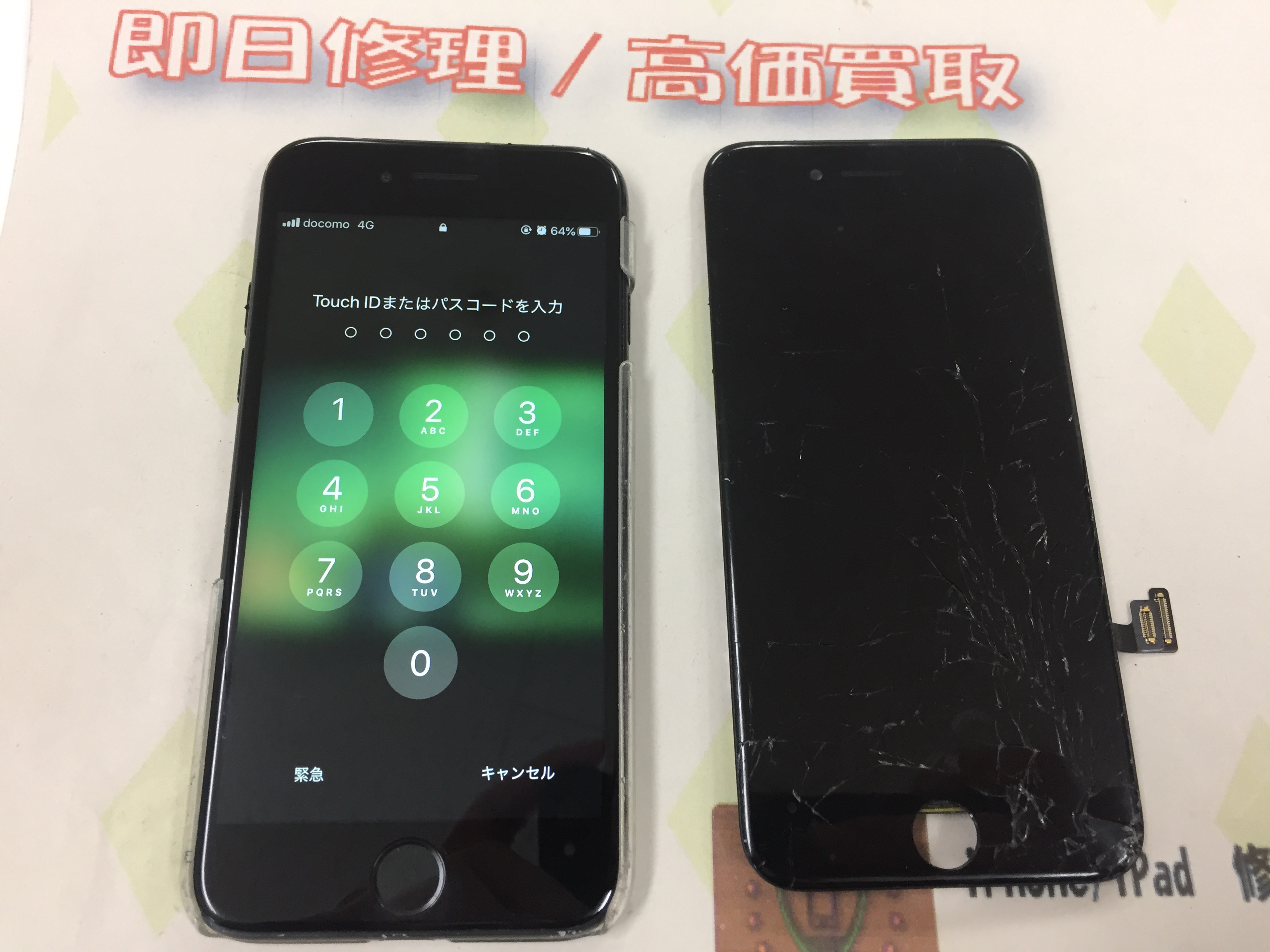 iPhone7 ガラス割れ→互換パーツでの修理 ¥9,800(税込)