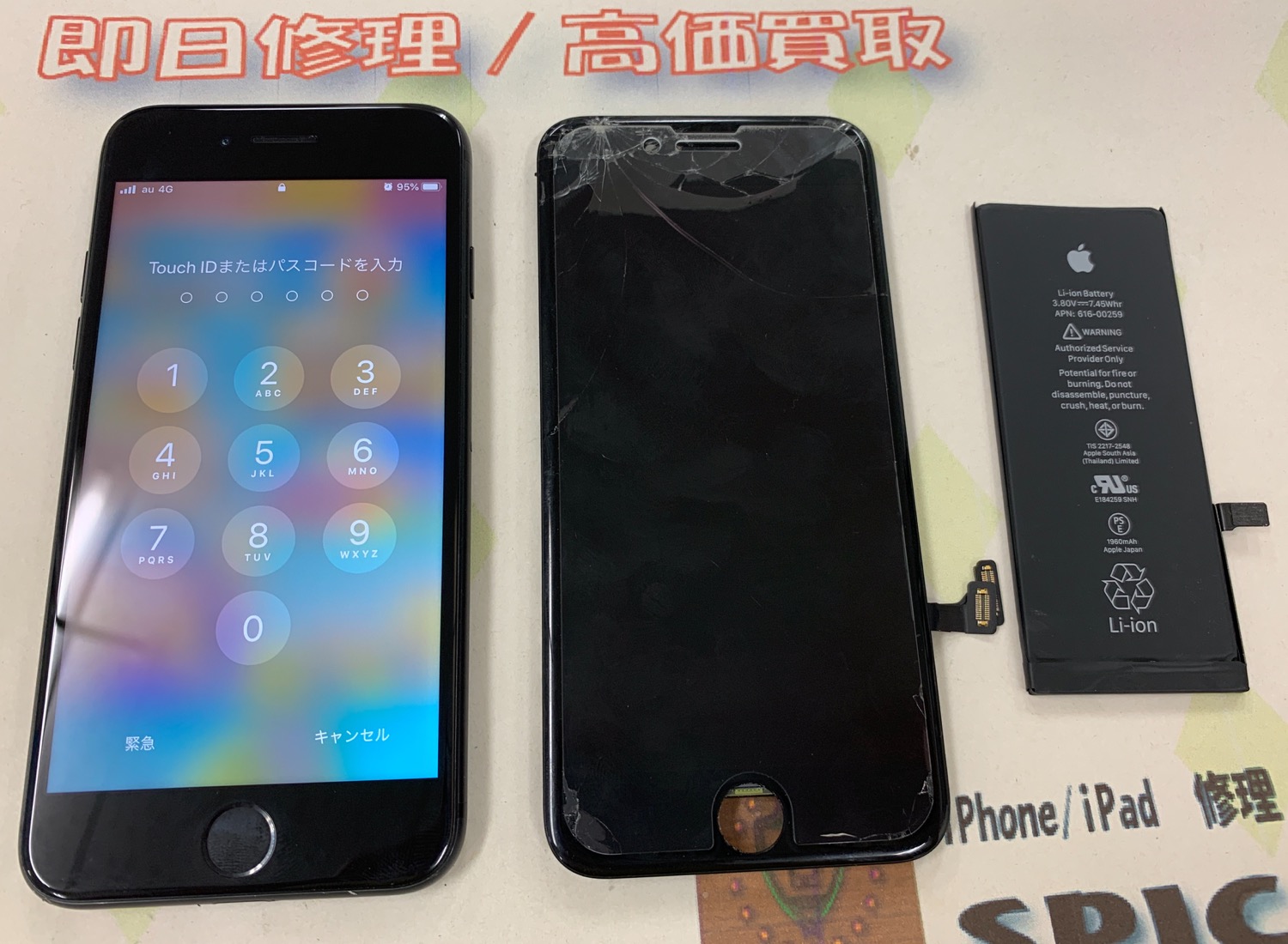 加古川市よりiPhone7 ガラス割れ&液晶不良、バッテリー交換をご依頼いただきました。