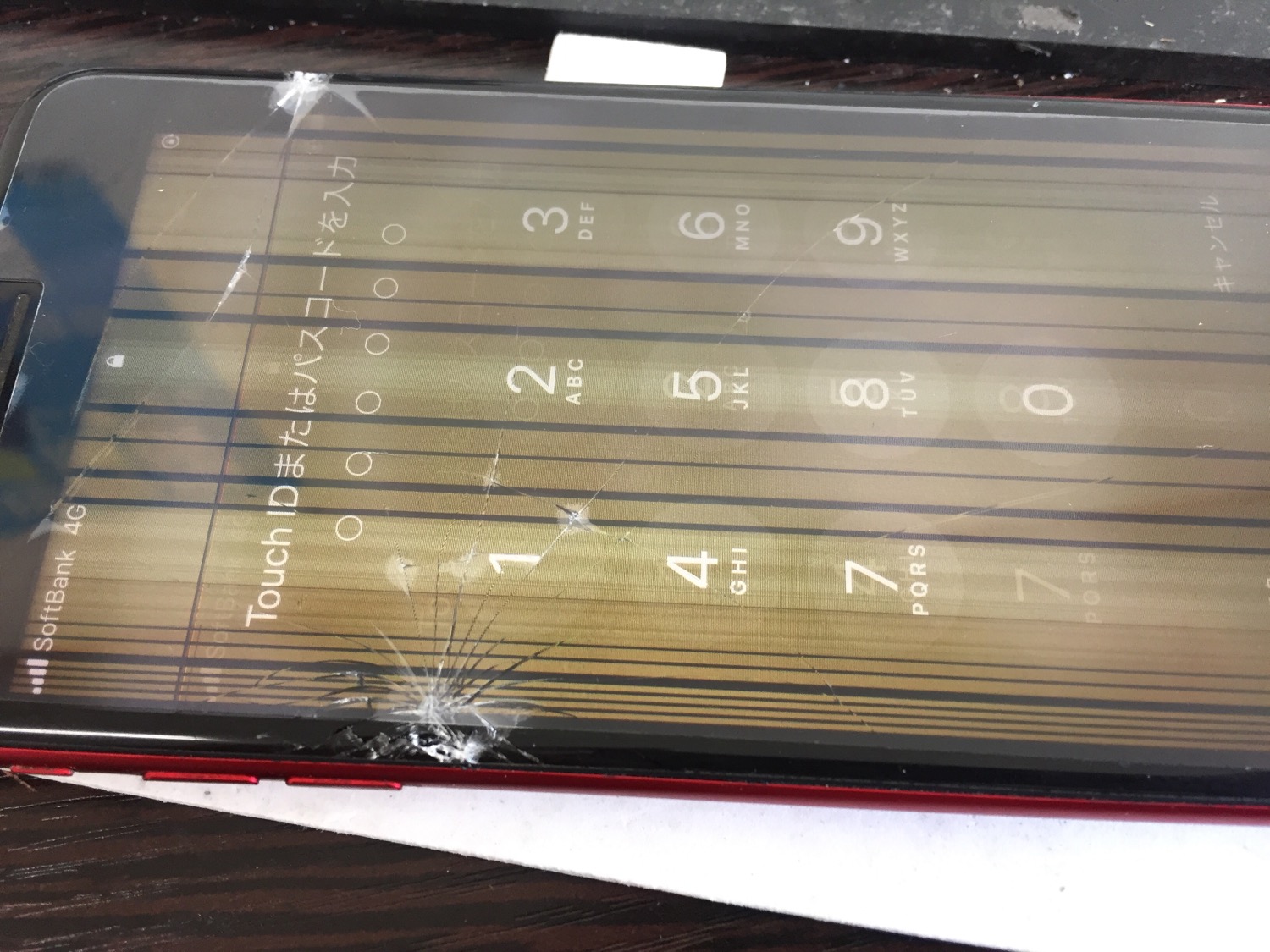 ガラス割れの影響で液晶不良、タッチパネル不良となっておりました。