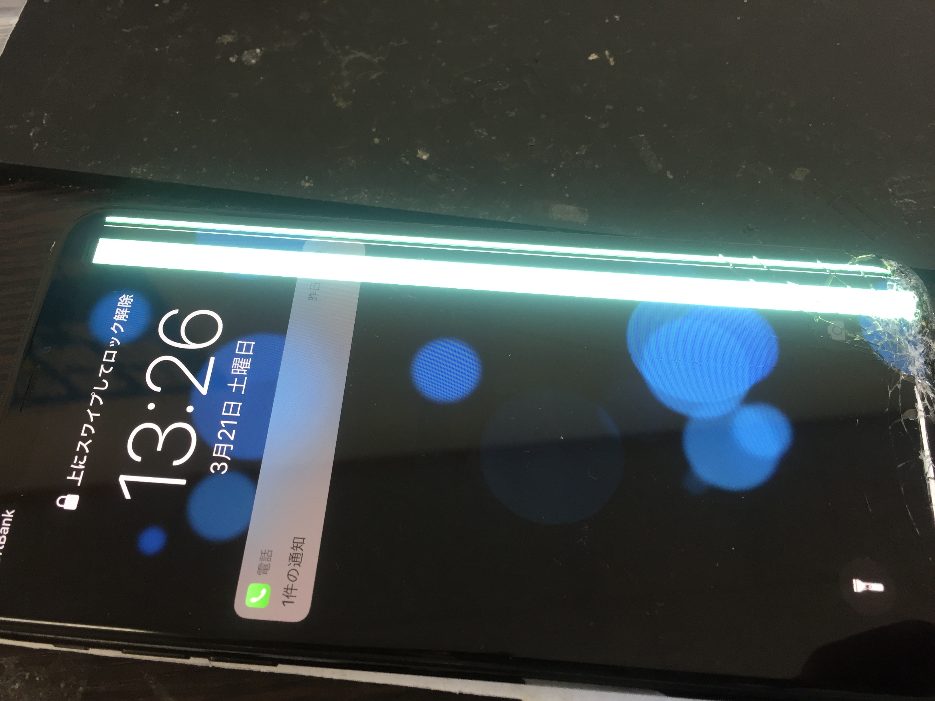 画面割れの影響で液晶に明るい縦線が表示されタッチパネルが反応せずデータのバックアップが取れない状態でした。