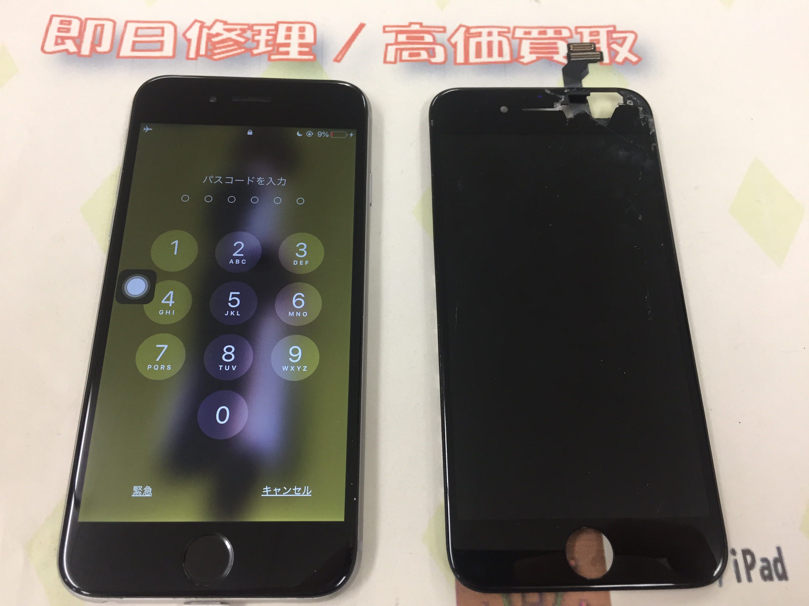 iPhone6 ガラス割れ→互換パーツでの修理 ¥7,800(税込)