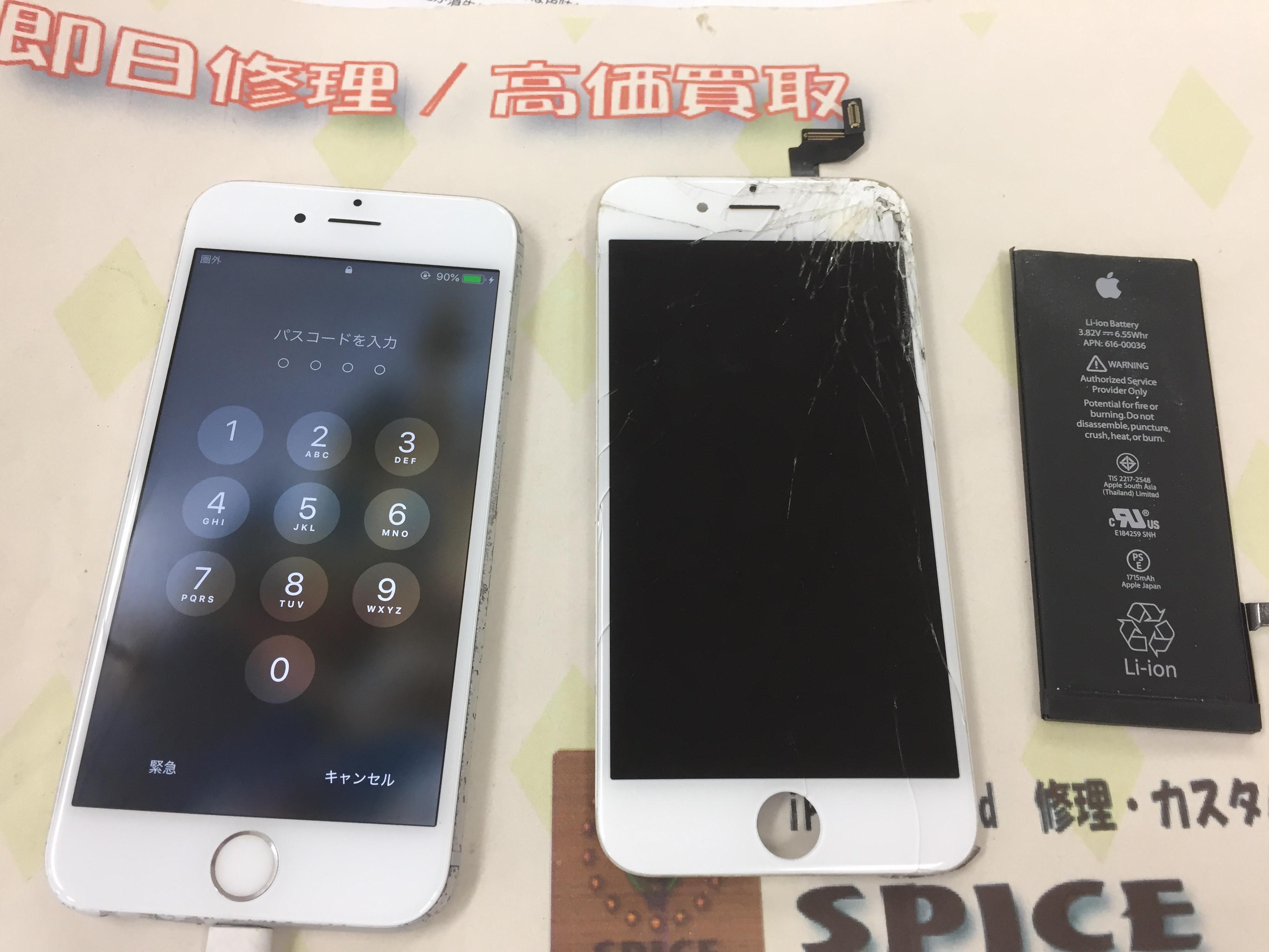 加古川市よりiPhone6s ガラス割れ、バッテリー交換をご依頼いただきました。