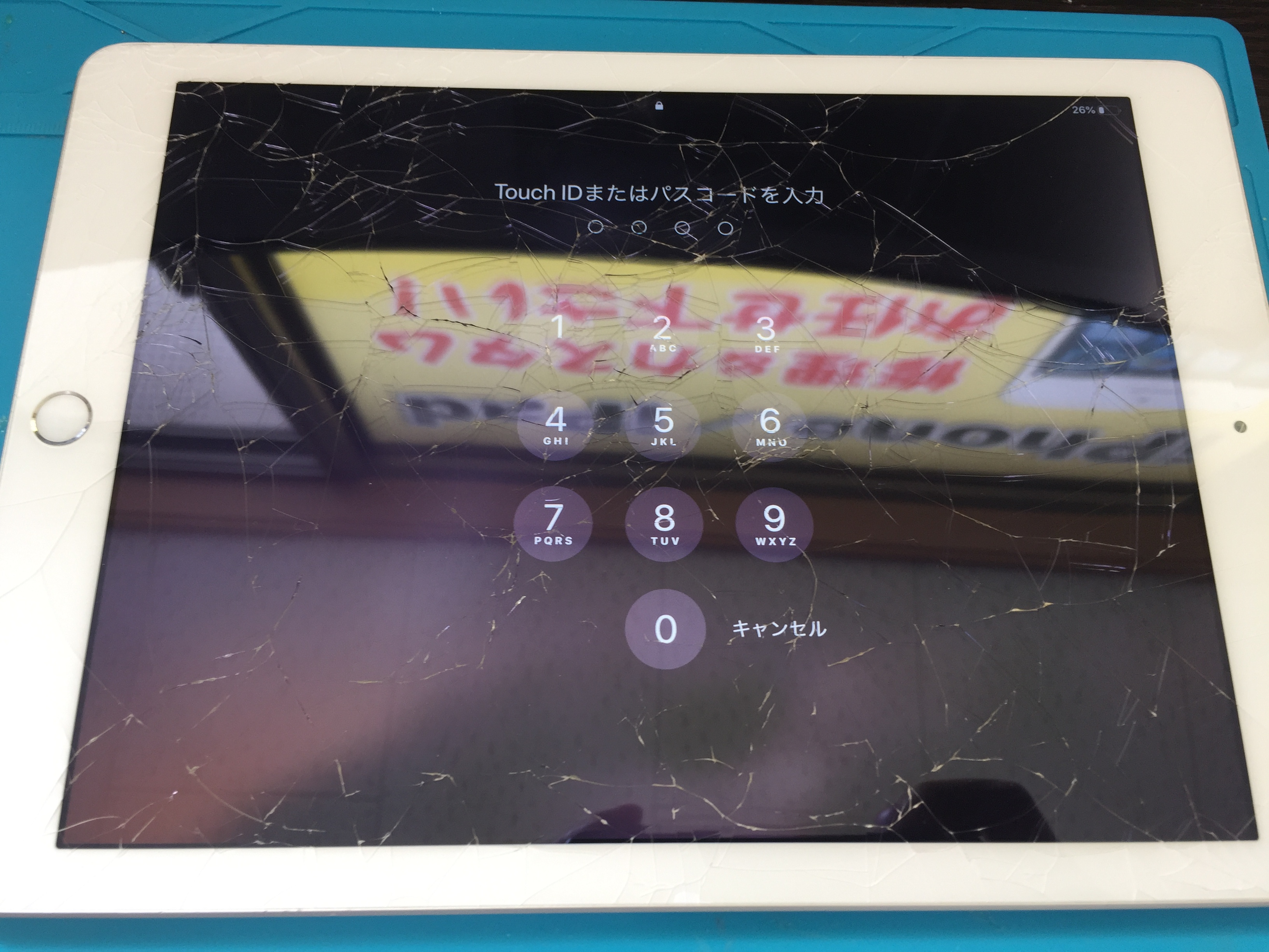 画面全体が激しくヒビ割れしている状態でした。
